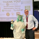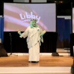 Liberty Learning Foundation (with generous sponsorship by the Houston County Community Alliance) is kicking off the program in a big way. Not only are students watching as the vivacious Statue of Liberty character brings history to life, they are also being introduced to the man who will give them a “hand” with lessons back in their classrooms. As Libby winds down, she hands the screen over to Mr. Palmer, a brash and brilliant hand-character who leads students in lessons in civics, character, financial literacy and our Great American Story.