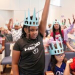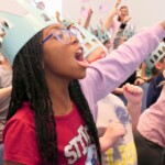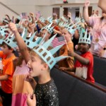 Today second graders from Rehobeth Primary & Webb Elementary Schools cheered and counted down to the grand entrance of Libby Liberty™. Wearing green paper crowns and waving tiny American flags, they showed their enthusiasm for the Super Citizen Program they’ll begin after today’s theatrical performance.