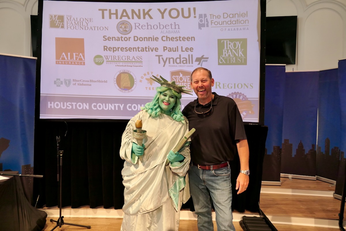 - Libby Liberty™ makes her entrance to greet the students of Houston County!