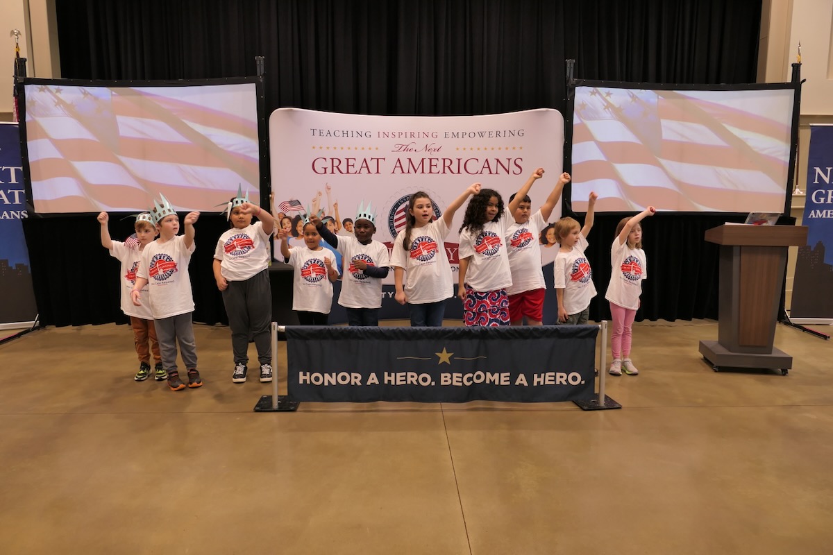 Students chose heroes who embodied the traits of amazing citizens and read essays from stage before presenting them with Liberty Pins. They learned that “when you honor a hero, you become a hero!”