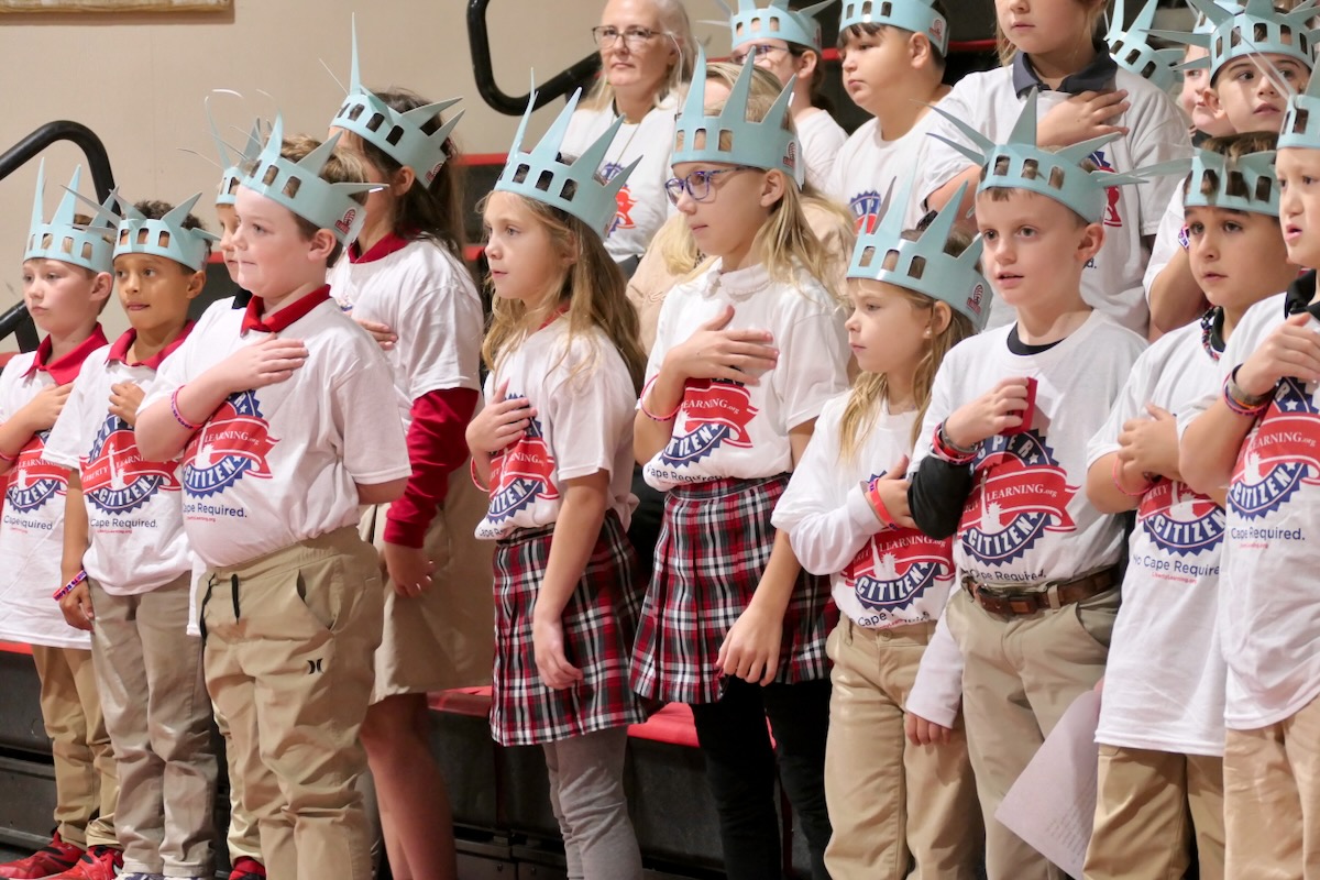 Today, Abbeville Christian Academy students filled their gymnasium. After finishing 10 weeks in the Super Citizen Program, they are gathered to celebrate their accomplishments and honor local heroes from the stage.