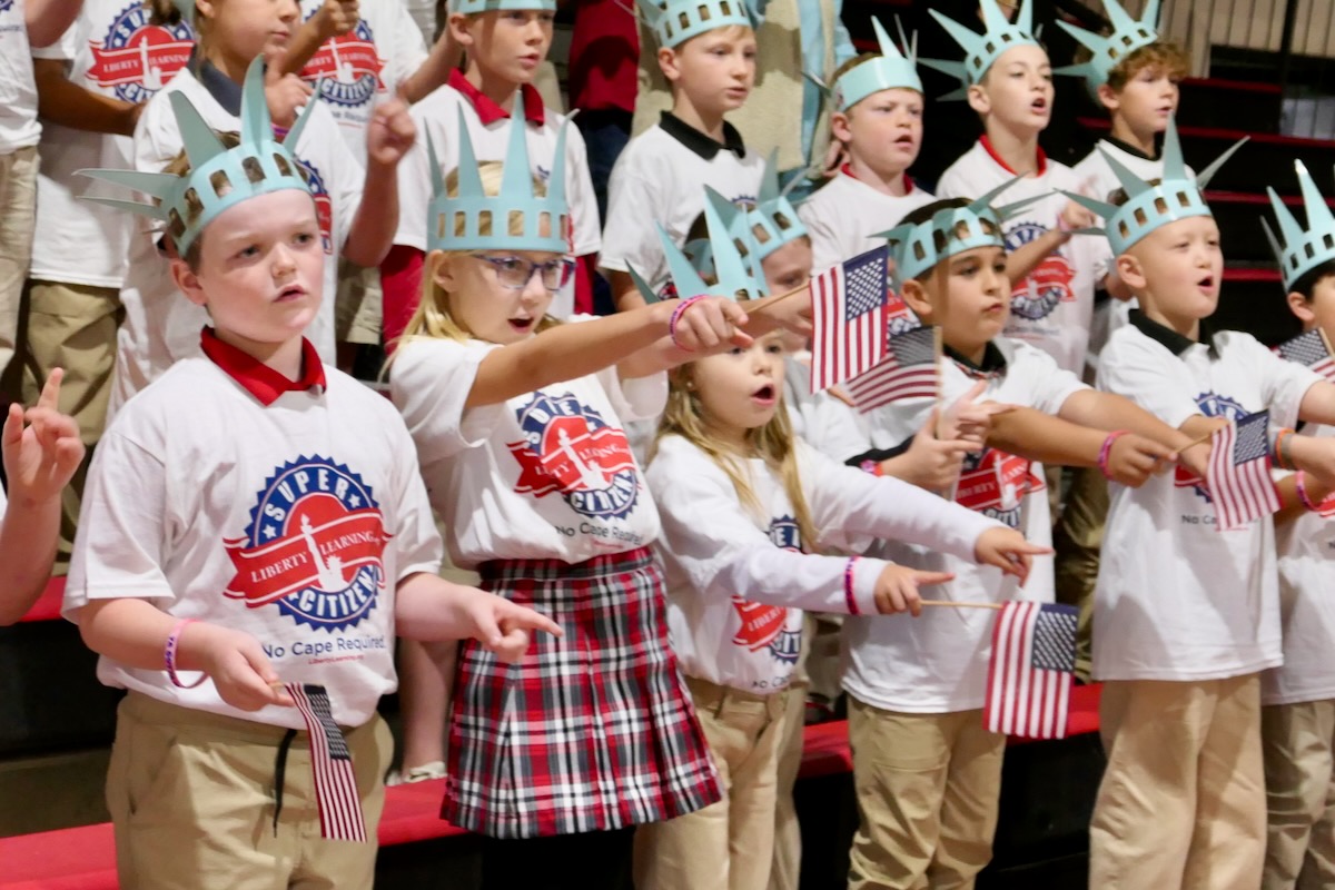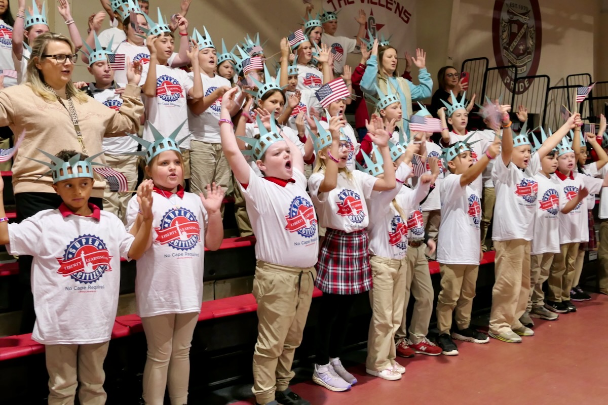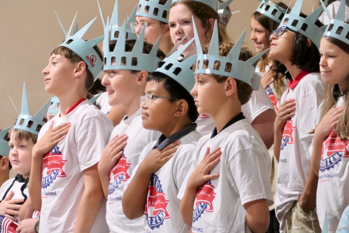 These students have learned their important roles in America’s future thanks to an immersive experience in civics, character, financial literacy and social studies. And in the closing piece of the program, Torch Teams (or “Helping Hands” for the younger students), students are applying those crucial lessons in the real world. They chose heroes who embodied the traits of amazing citizens and read essays from stage before presenting them with an Authentic Liberty Replicas & Liberty Pins. They learned that “when you honor a hero, you become a hero!”