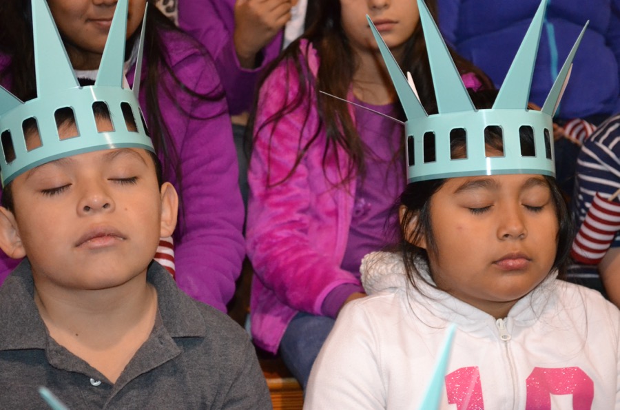 - These students close their eyes to imagine coming to America for the first time.