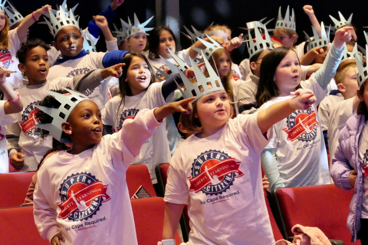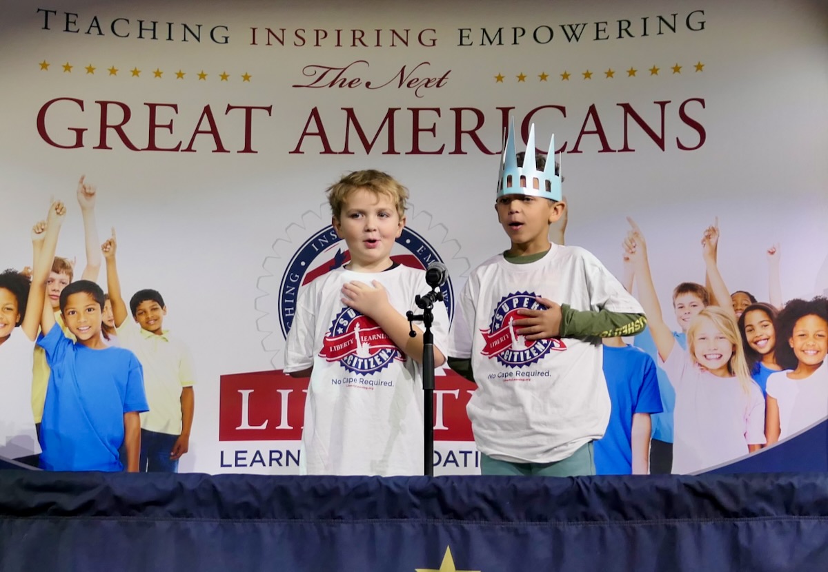 Students chose heroes who embodied the traits of amazing citizens and read essays from stage before presenting them with Liberty Pins. They learned that “when you honor a hero, you become a hero!”