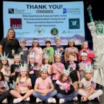 Today second graders from Robertsdale & Foley Elementary School cheered and counted down to the grand entrance of Libby Liberty™. Wearing green paper crowns and waving tiny American flags, they showed their enthusiasm for the Super Citizen Program they’ll begin after today’s theatrical performance.