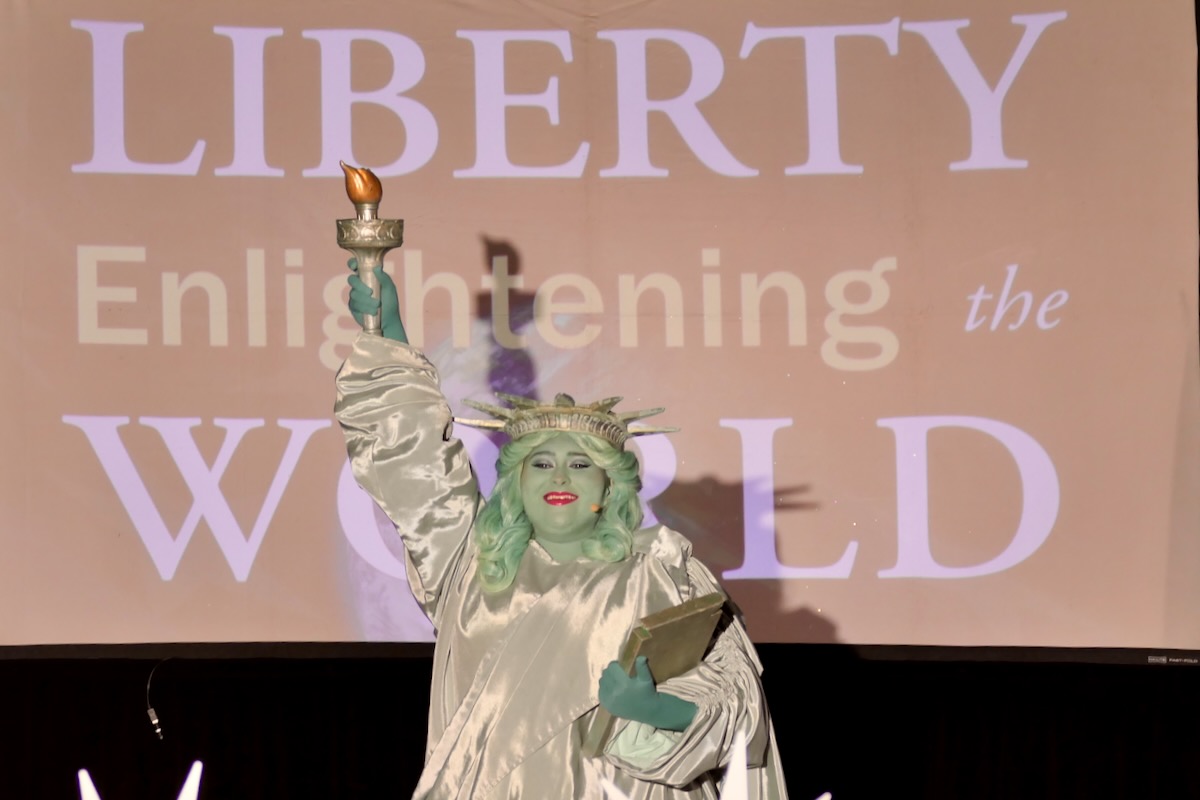 - Libby Liberty™ makes her entrance to reveal her true name: “Liberty Enlightening the World.”