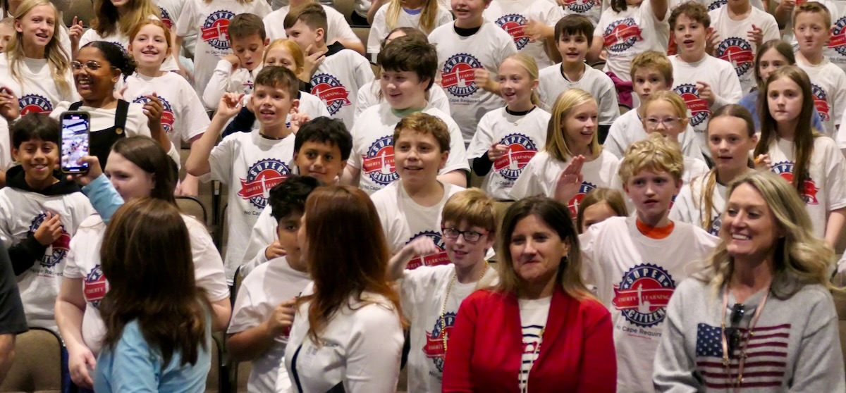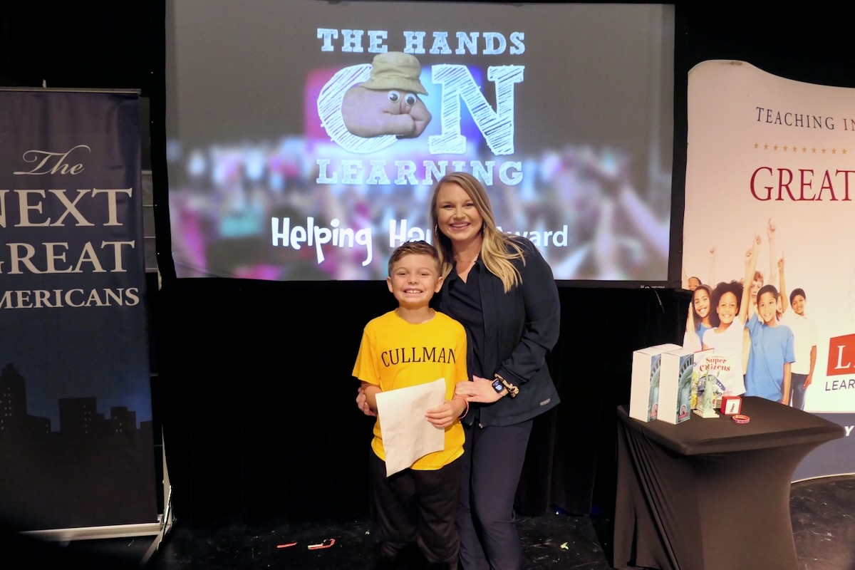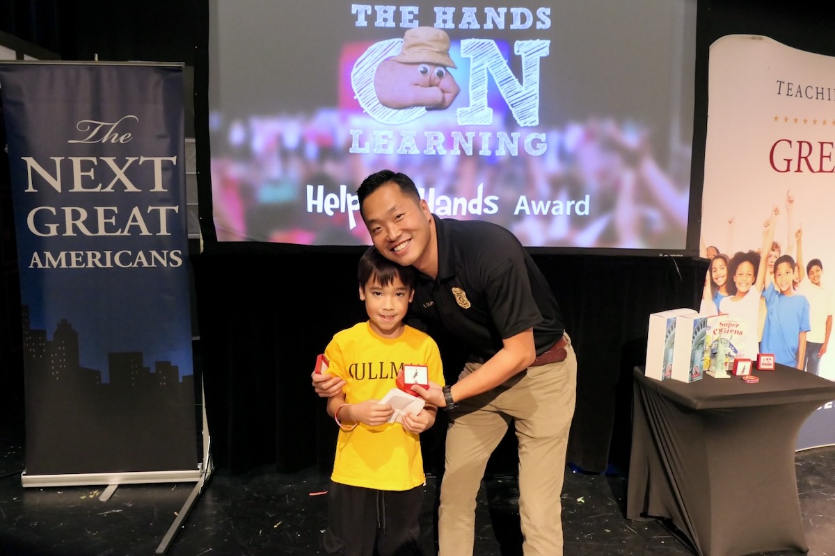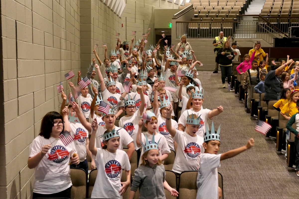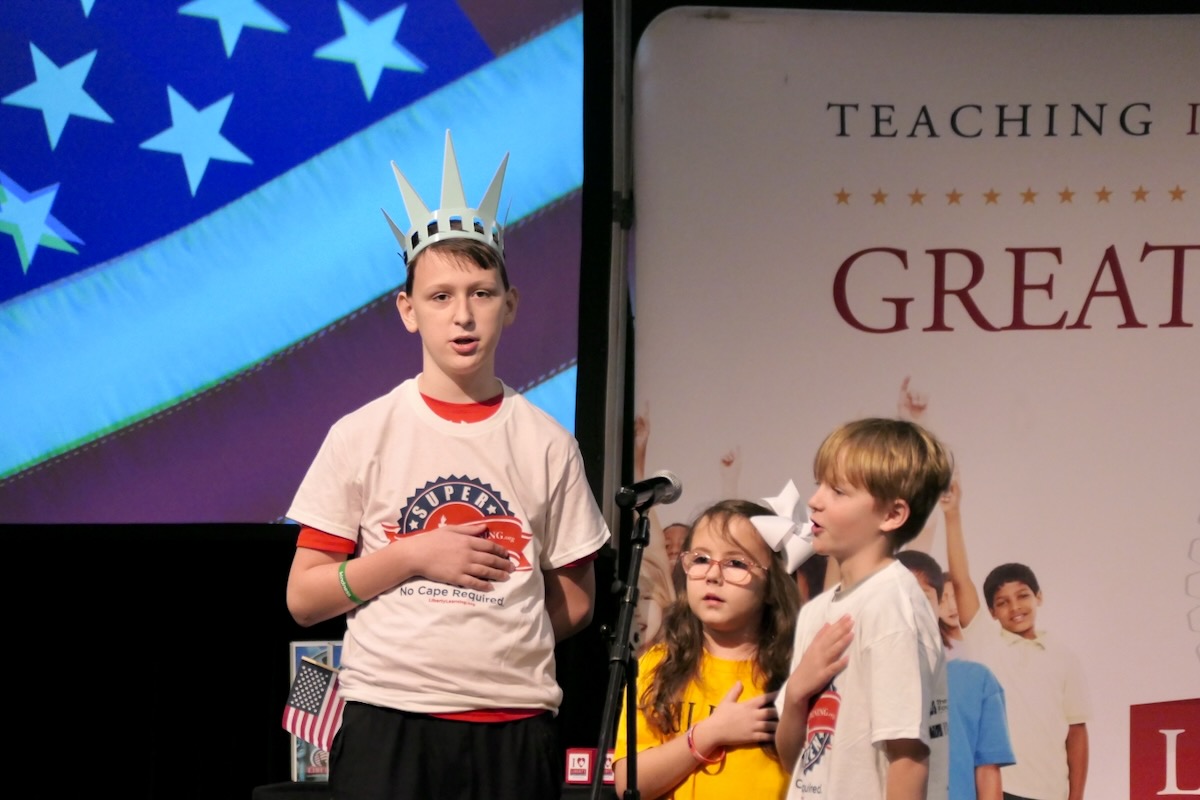These students have learned their important roles in America’s future thanks to an immersive experience in civics, character, financial literacy and social studies. And in the closing piece of the program, Torch Teams (or “Helping Hands” for the younger students), students are applying those crucial lessons in the real world. They chose heroes who embodied the traits of amazing citizens and read essays from stage before presenting them with an Authentic Liberty Replicas & Liberty Pins. They learned that “when you honor a hero, you become a hero!”