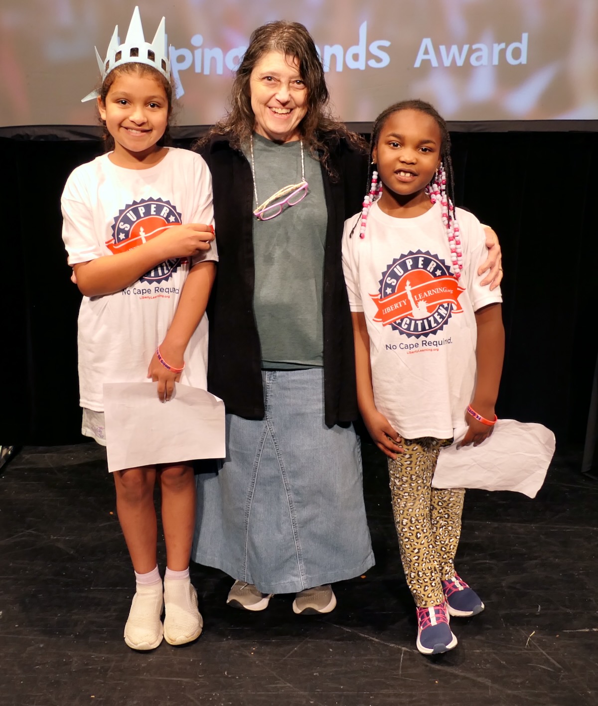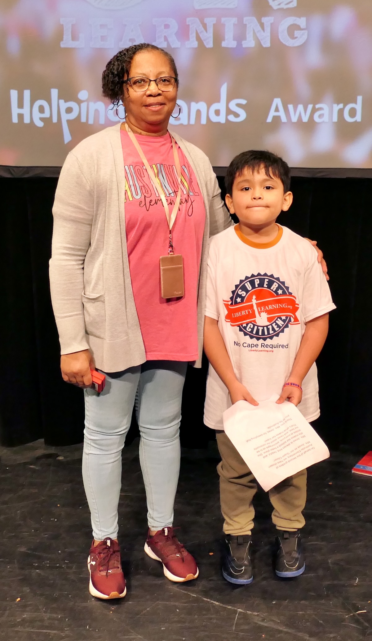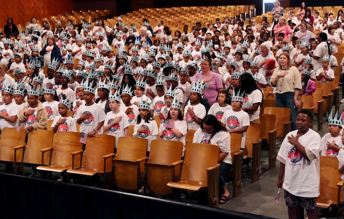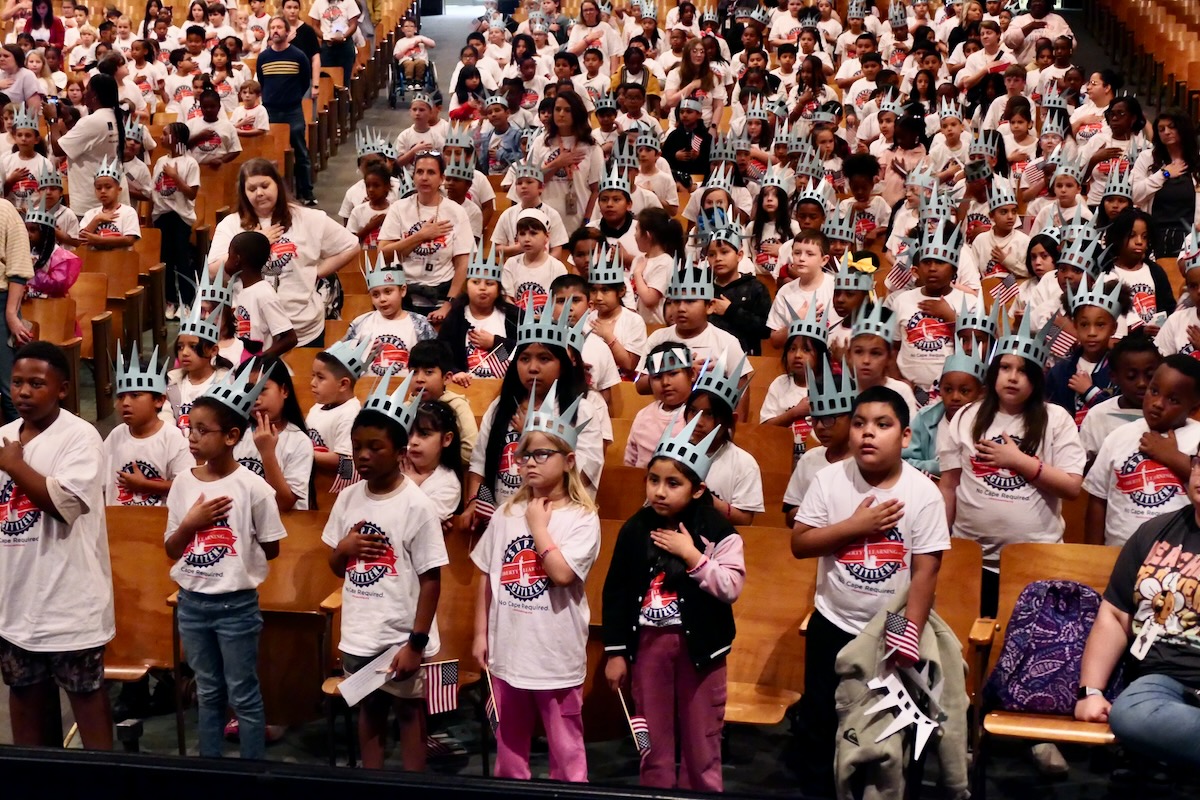 Thanks to Mr. Palmer and his very hands-on teaching, these students have begun learning about their important roles in America’s future. The “Hands on Liberty” series and accompanying activities and lesson plans teach crucial lessons in civics, character, financial literacy and social studies to a tech-centric generation. And in the closing piece of the program, Helping Hands, students are applying those crucial lessons in the real world. Students chose heroes who embodied the traits of amazing citizens and read essays from stage before presenting them with Liberty Pins. They learned that “when you honor a hero, you become a hero!”