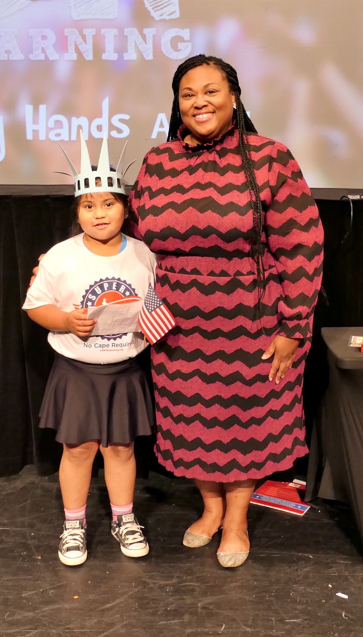 - Ayonna, Edy, Henry, Demarco, Beckham, Ar’eyae, Marleigh, Rosy, Lenny, Noelia, and Audra lead students, heroes, and guests in the Pledge of Allegiance!