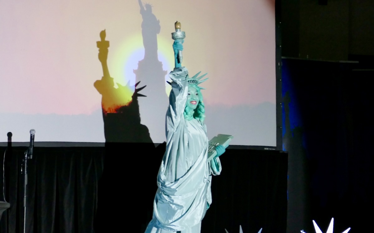 - Libby shares the iconic poem “The New Colossus.”