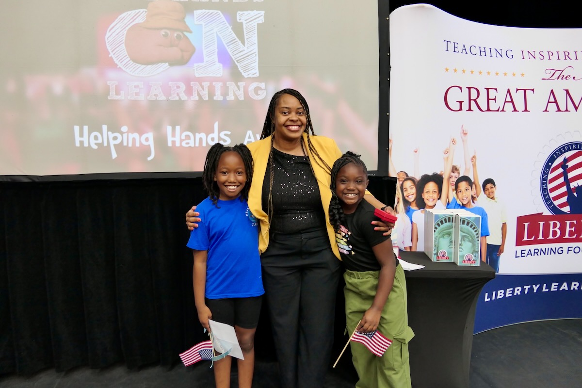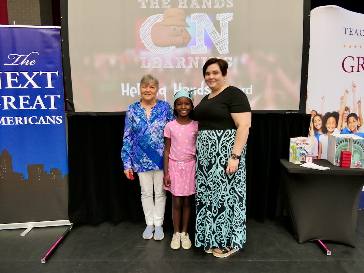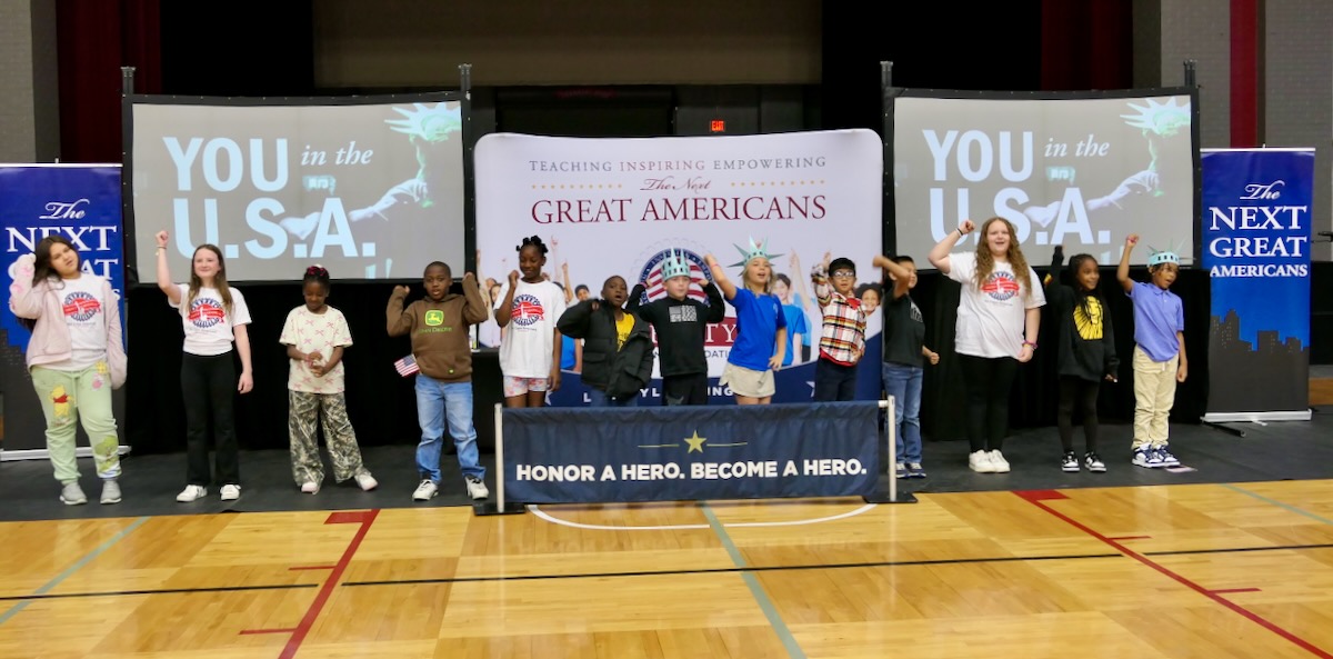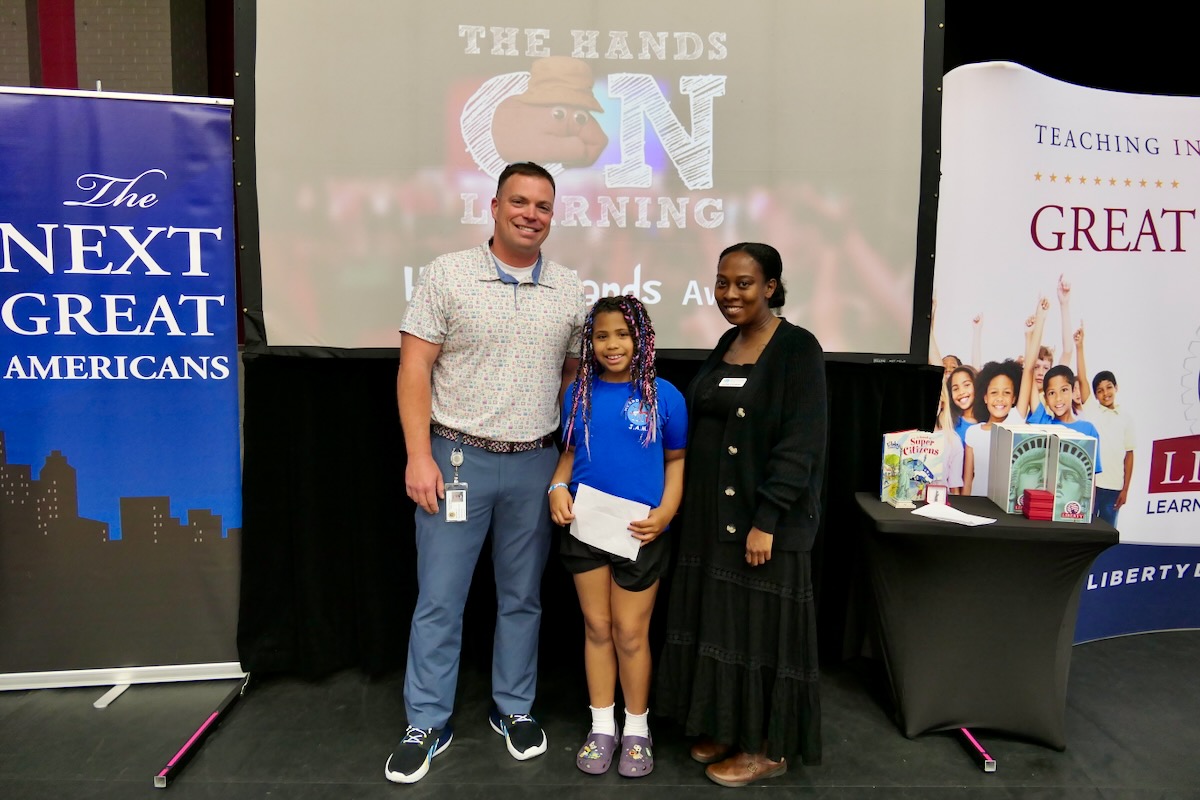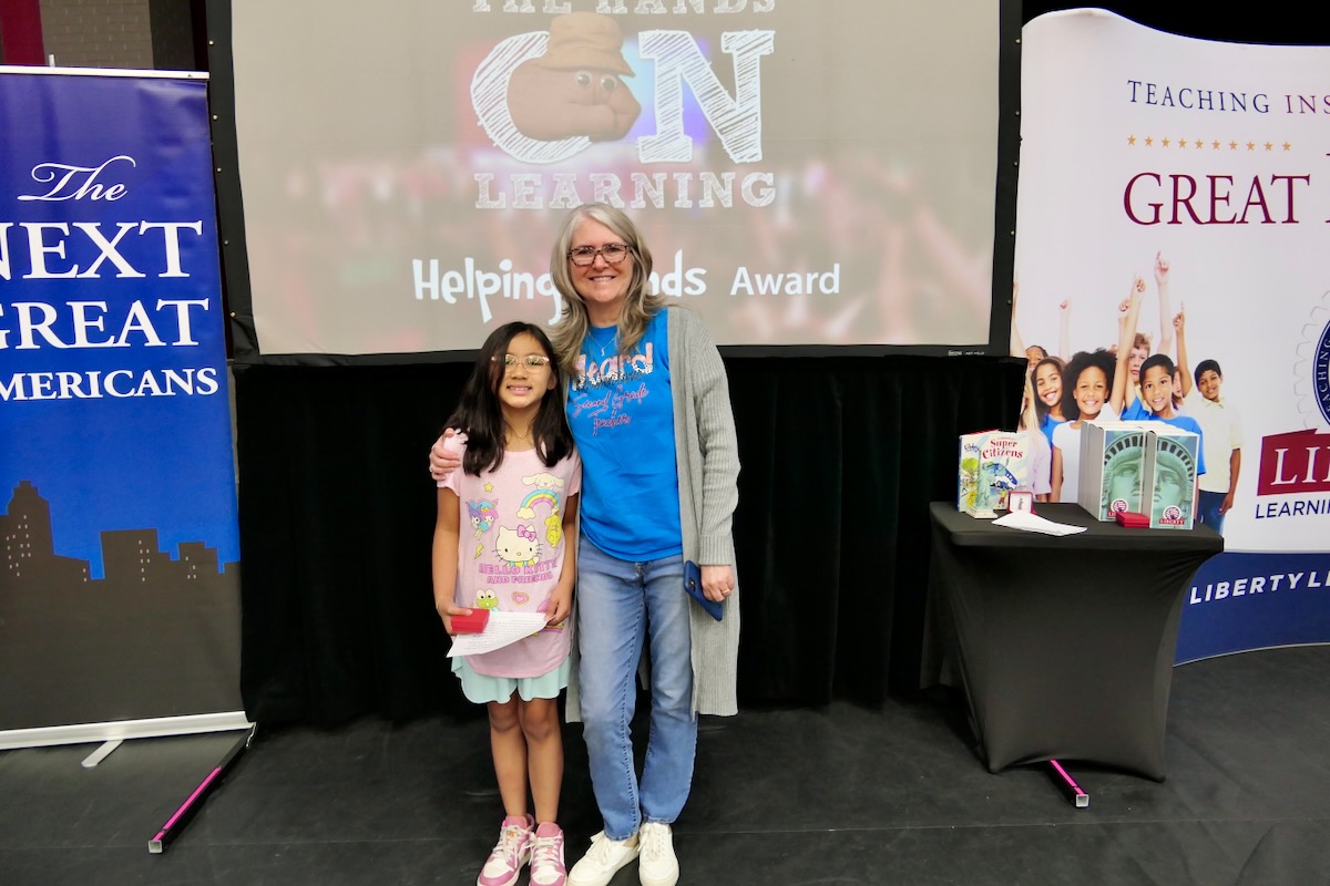 These students have learned their important roles in America’s future thanks to an immersive experience in civics, character, financial literacy and social studies. And in the closing piece of the program, Torch Teams (or “Helping Hands” for the younger students), students are applying those crucial lessons in the real world. They chose heroes who embodied the traits of amazing citizens and read essays from stage before presenting them with an Authentic Liberty Replicas & Liberty Pins. They learned that “when you honor a hero, you become a hero!”