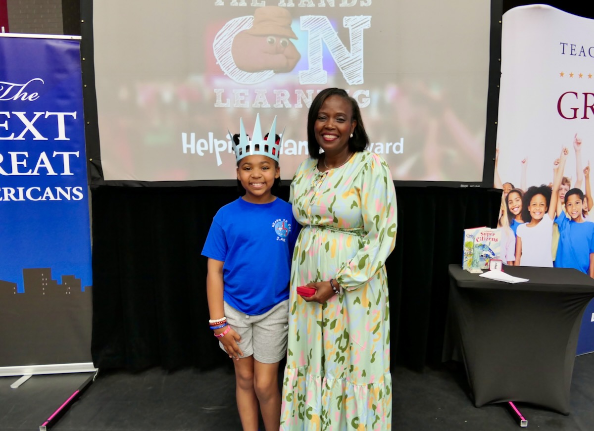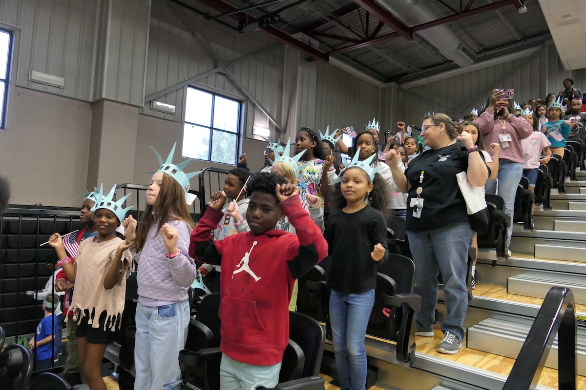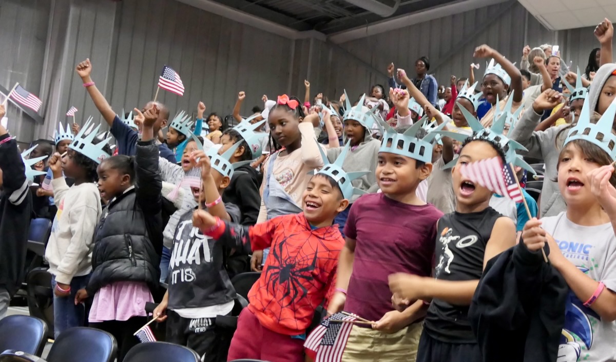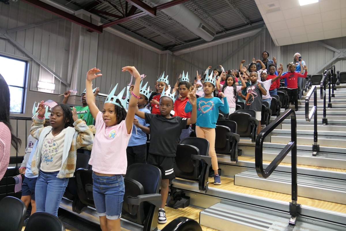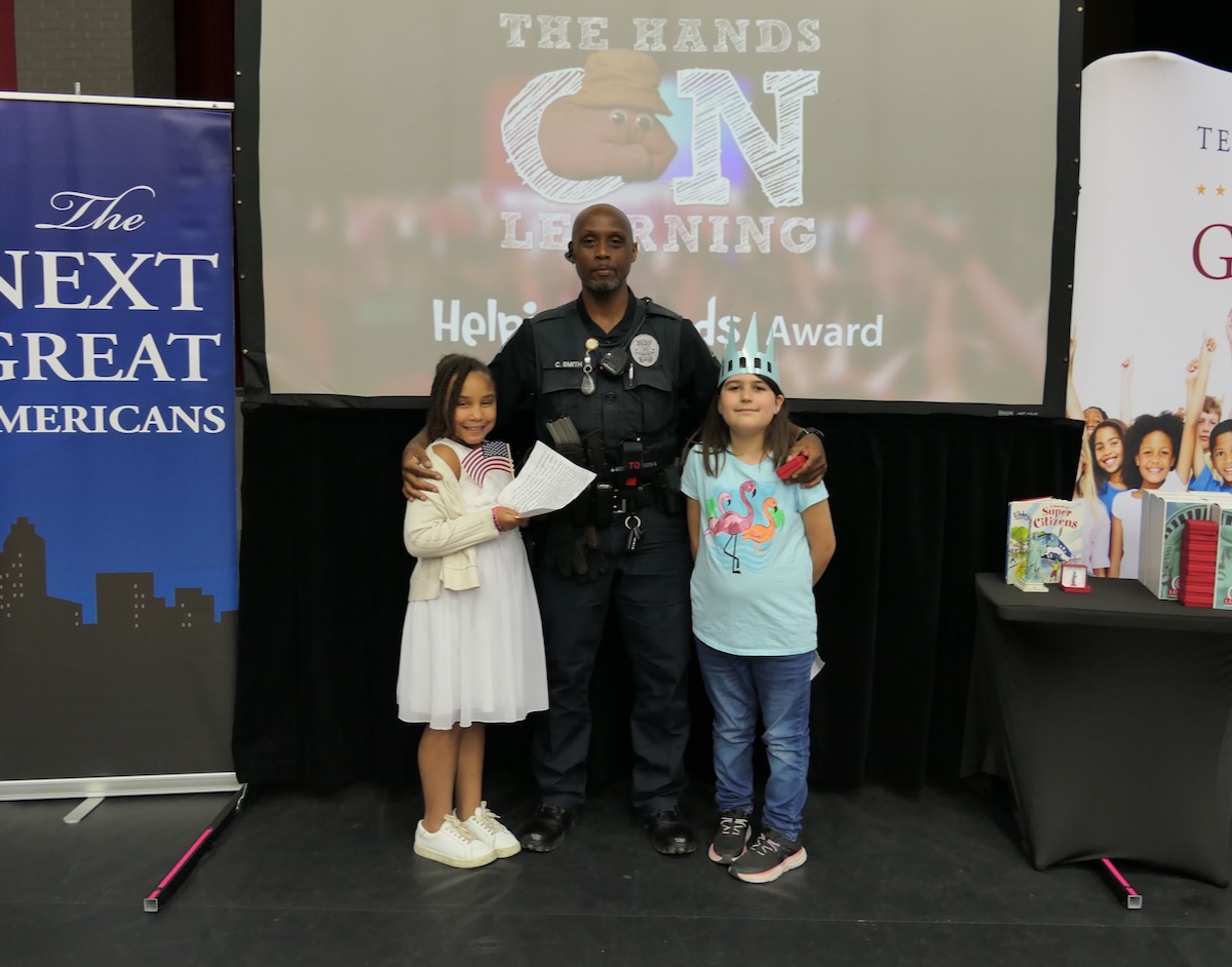 These students have learned their important roles in America’s future thanks to an immersive experience in civics, character, financial literacy and social studies. And in the closing piece of the program, Torch Teams (or “Helping Hands” for the younger students), students are applying those crucial lessons in the real world. They chose heroes who embodied the traits of amazing citizens and read essays from stage before presenting them with an Authentic Liberty Replicas & Liberty Pins. They learned that “when you honor a hero, you become a hero!”