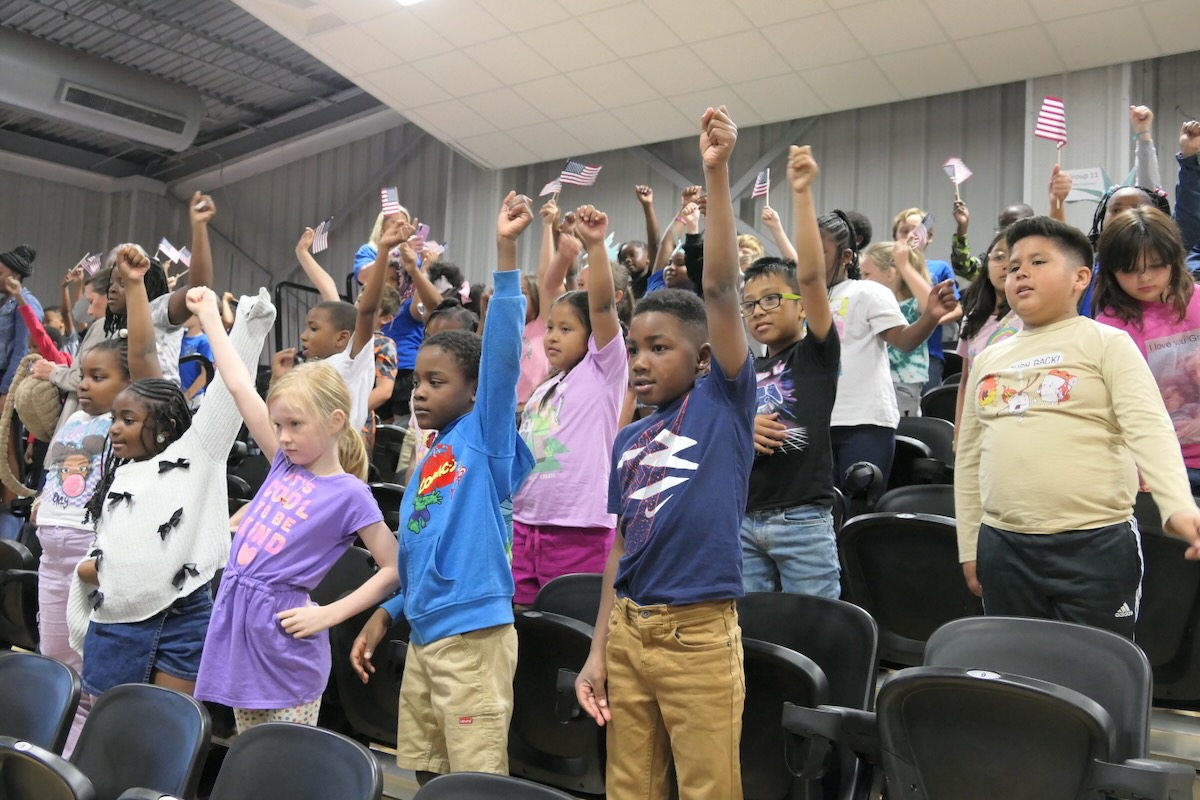 Today, Girard Elementary, Hidden Lake Primary, Heard Elementary, Kelly Springs Elementary, & Morris Slingluff second and fifth grade students filled the Dothan High School Convocation Center. After finishing 10 weeks in the Super Citizen Program, they are gathered to celebrate their accomplishments and honor local heroes from the stage.