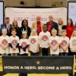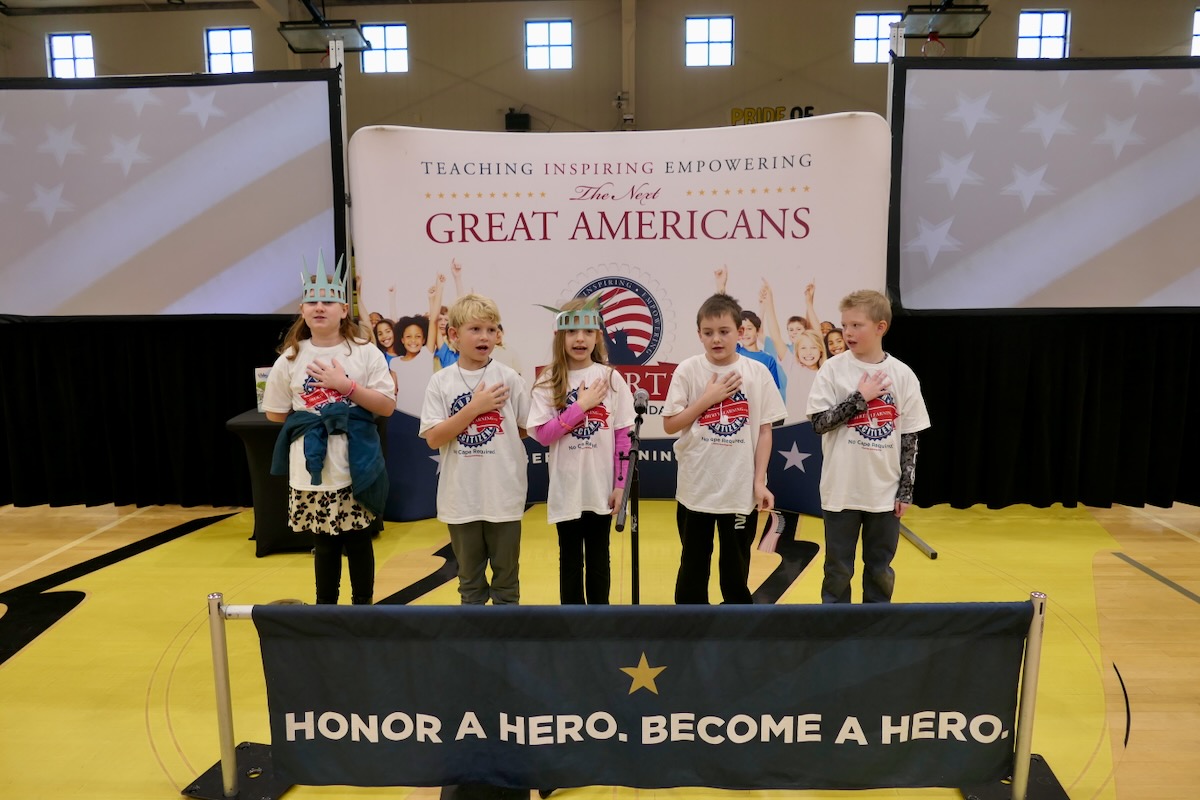 Students chose heroes who embodied the traits of amazing citizens and read essays from stage before presenting them with Liberty Pins. They learned that “when you honor a hero, you become a hero!”