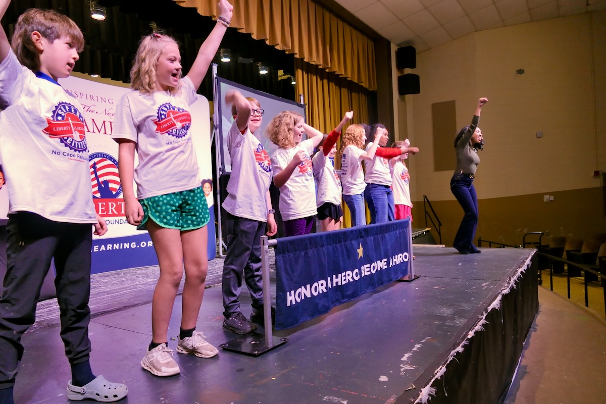 Students chose heroes who embodied the traits of amazing citizens and read essays from stage before presenting them with Authentic Liberty Replicas . They learned that “when you honor a hero, you become a hero!”