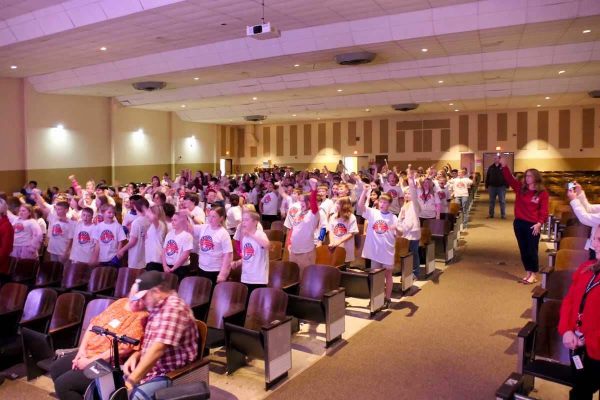 Today, Collins Intermediate School fifth graders filled their auditorium. After finishing 10 weeks in the Super Citizen Program, they are gathered to celebrate their accomplishments and honor local heroes from the stage.