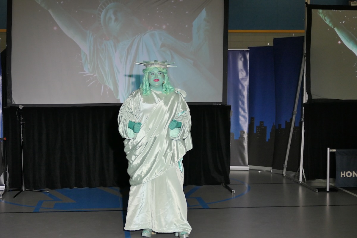 - Libby Liberty™ makes her entrance to reveal her true name: “Liberty Enlightening the World.”