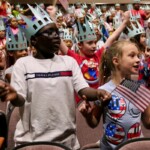 Today second graders from Gadsden City Schools cheered and counted down to the grand entrance of Libby Liberty™. Wearing green paper crowns and waving tiny American flags, they showed their enthusiasm for the Super Citizen Program they’ll begin after today’s theatrical performance.