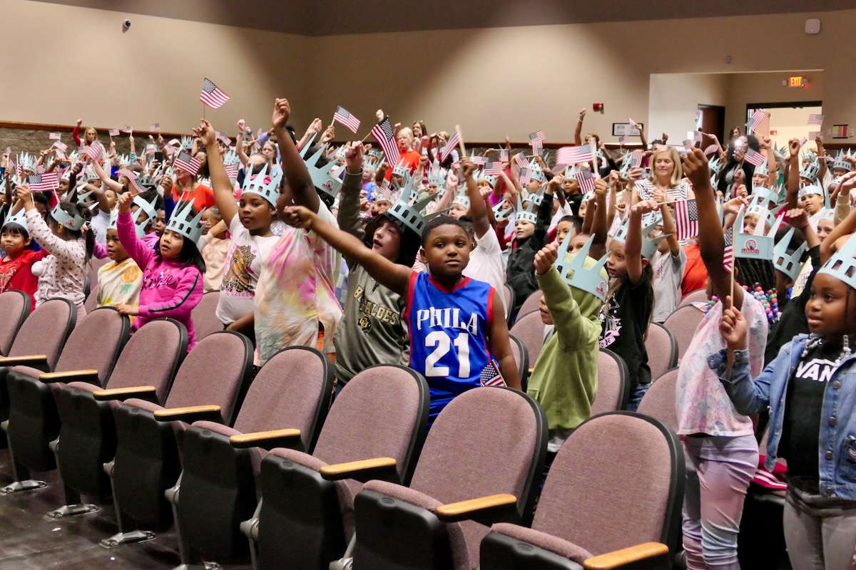 After class photos with Libby, students and teachers return to classrooms energized to learn crucial, all-American lessons. They’ll also begin the process of nominating and honoring “Helping Hands Heroes” who they will honor at their graduation celebration when the program is complete for this year.