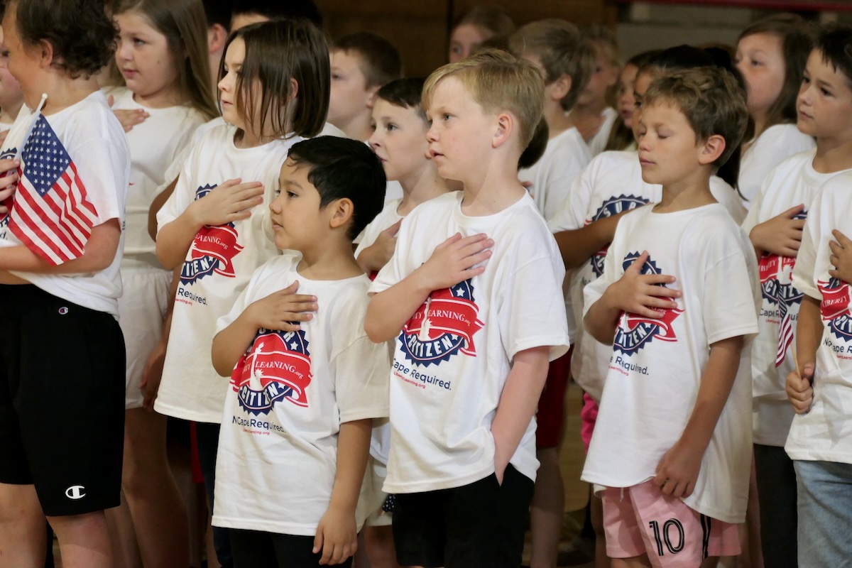 - Lillie Grace and Matteo lead students, heroes, and guests in the Pledge of Allegiance!