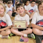 Today, 2nd graders from Guntersville Elementary School filled their gymnasium. After finishing 10 weeks in the Hands on Liberty Program, they are gathered to celebrate their accomplishments and honor local heroes from the stage.
