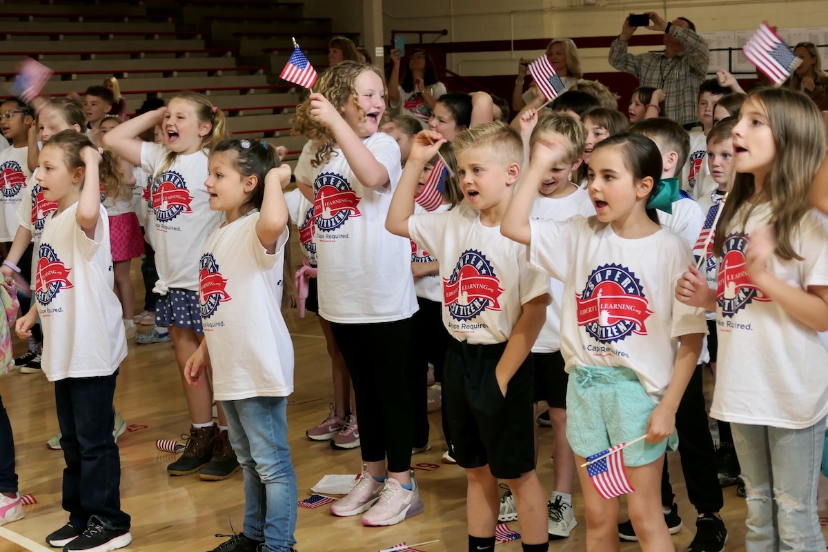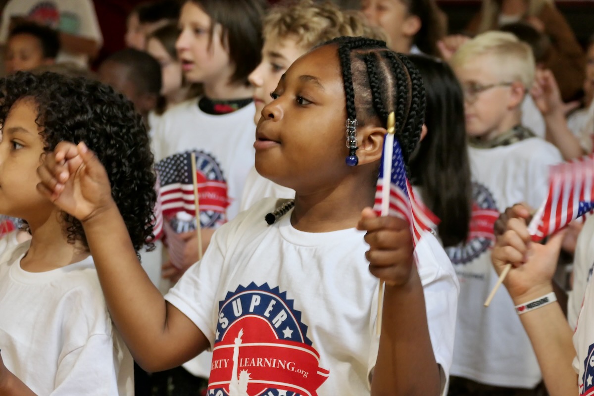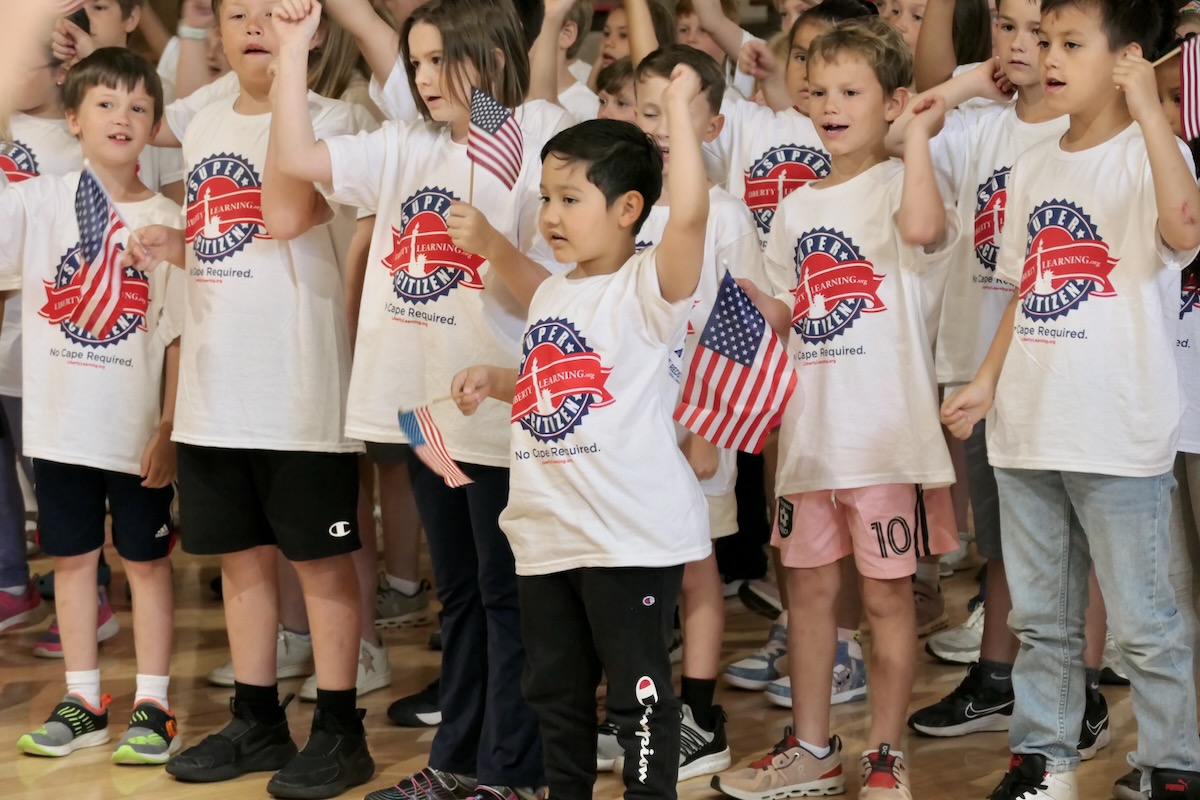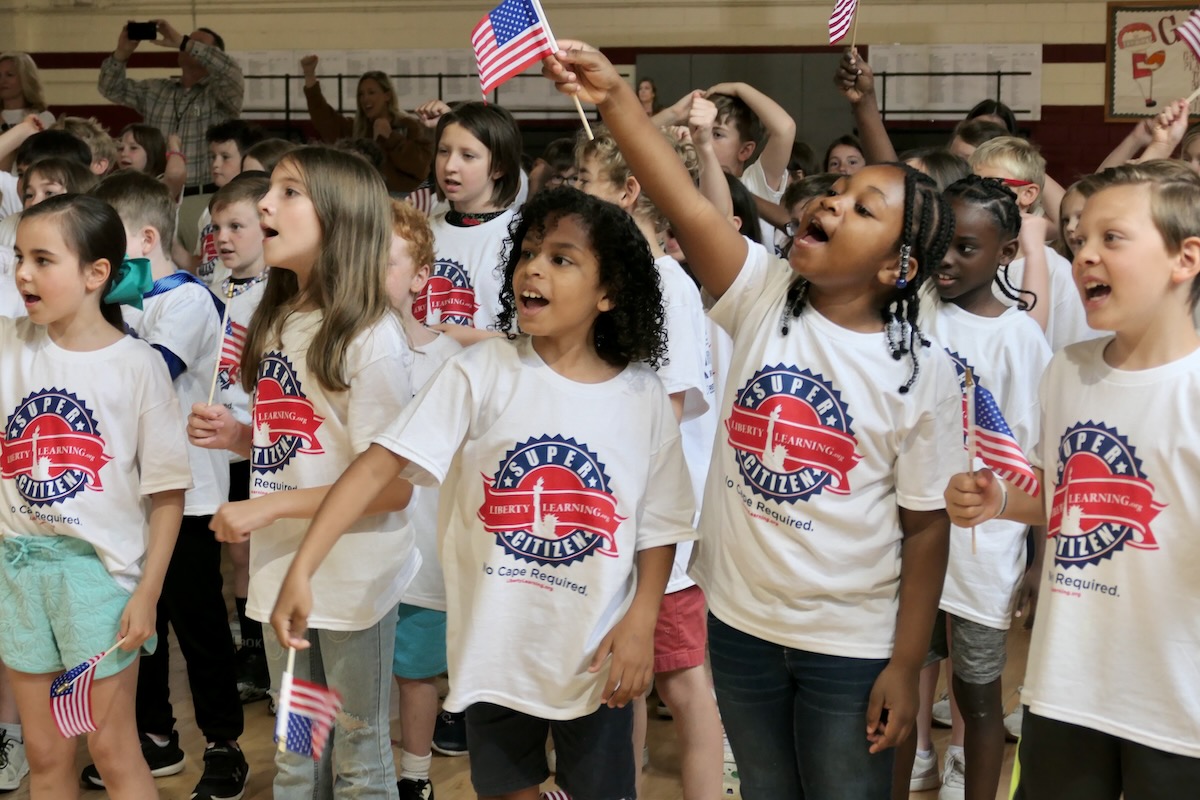 Thanks to Mr. Palmer and his very hands-on teaching, these students have begun learning about their important roles in America’s future. The “Hands on Liberty” series and accompanying activities and lesson plans teach crucial lessons in civics, character, financial literacy and social studies to a tech-centric generation. And in the closing piece of the program, Helping Hands, students are applying those crucial lessons in the real world. Students chose heroes who embodied the traits of amazing citizens and read essays from stage before presenting them with Liberty Pins. They learned that “when you honor a hero, you become a hero!”