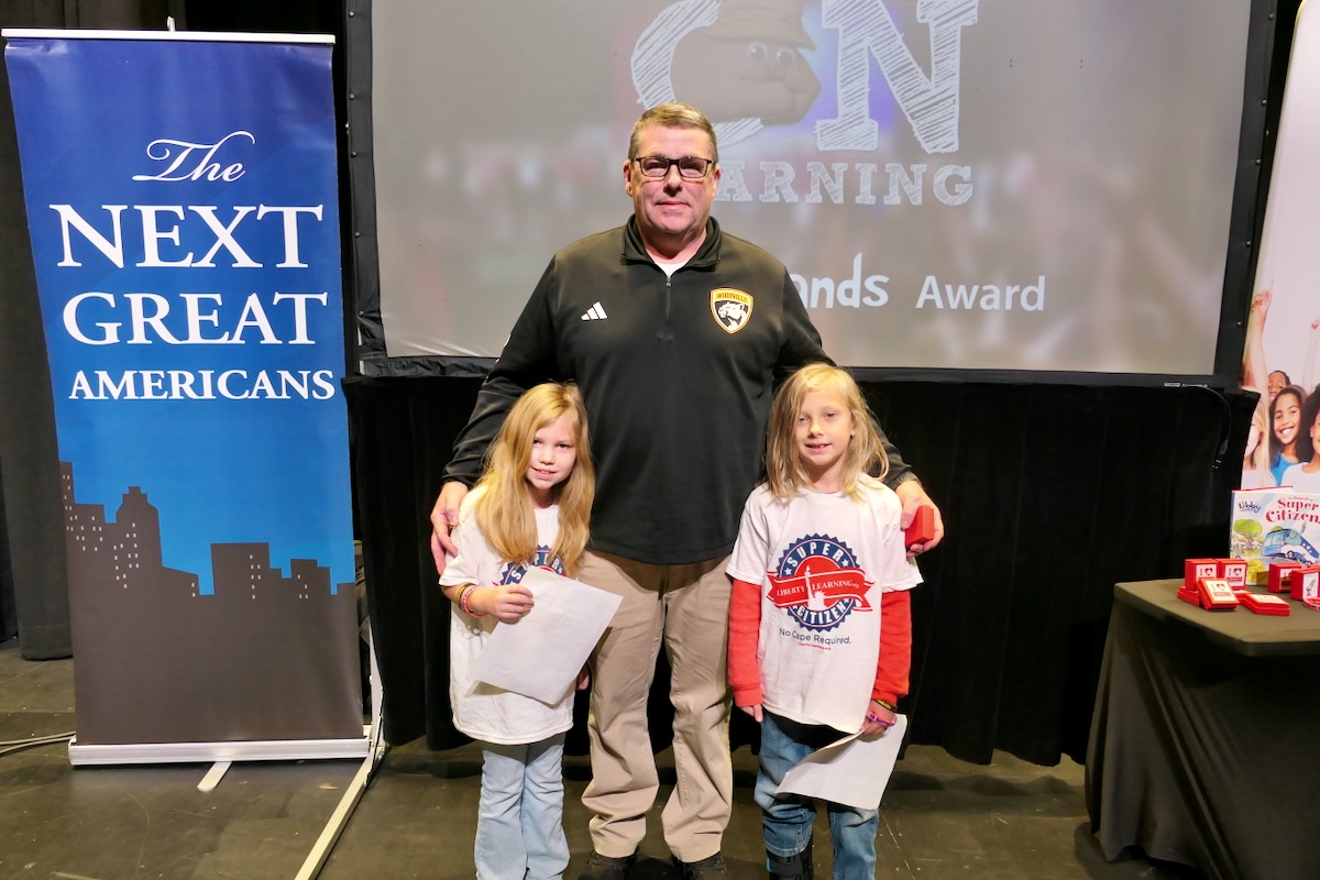 Students chose heroes who embodied the traits of amazing citizens and read essays from stage before presenting them with Liberty Pins. They learned that “when you honor a hero, you become a hero!”