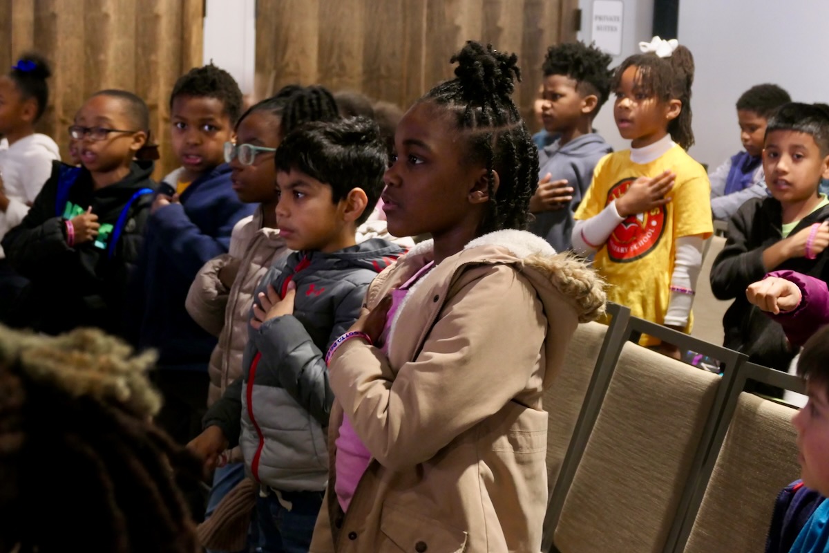 Today, Lakewood, Martin Luther King Jr, & Williams P-8 students filled thes Royal at StoveHouse. After finishing 10 weeks in the Super Citizen Program, they are gathered to celebrate their accomplishments and honor local heroes from the stage.