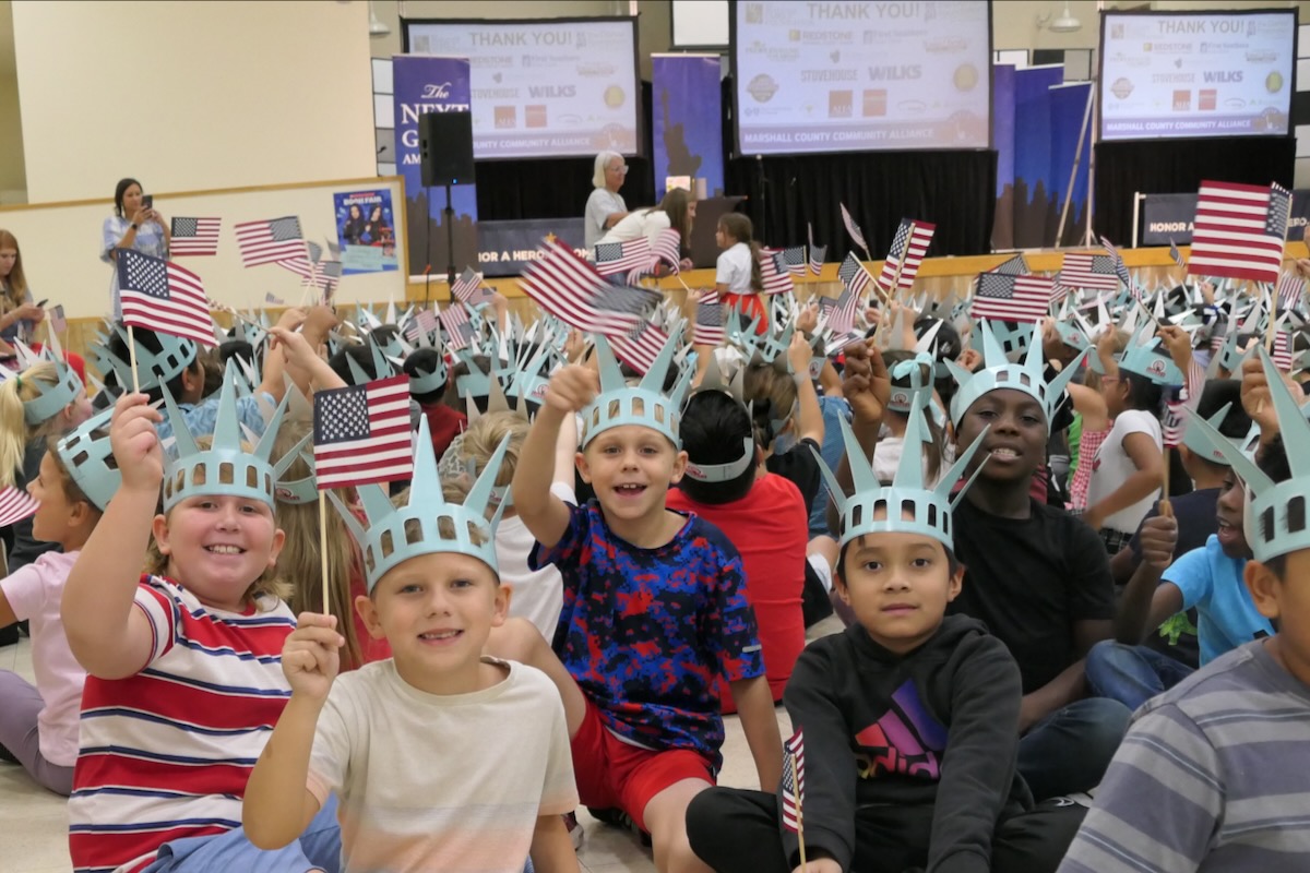 After class photos with Libby, students and teachers return to classrooms energized to learn crucial, all-American lessons. They’ll also begin the process of nominating and honoring “Helping Hands Heroes” who they will honor at their graduation celebration when the program is complete for this year.