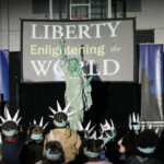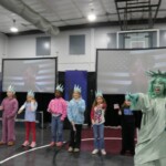 Liberty Learning Foundation (with generous sponsorship by the Jefferson County Community Alliance) is kicking off the program in a big way. Not only are students watching as the vivacious Statue of Liberty character brings history to life, they are also being introduced to the man who will give them a “hand” with lessons back in their classrooms. As Libby winds down, she hands the screen over to Mr. Palmer, a brash and brilliant hand-character who leads students in lessons in civics, character, financial literacy and our Great American Story.