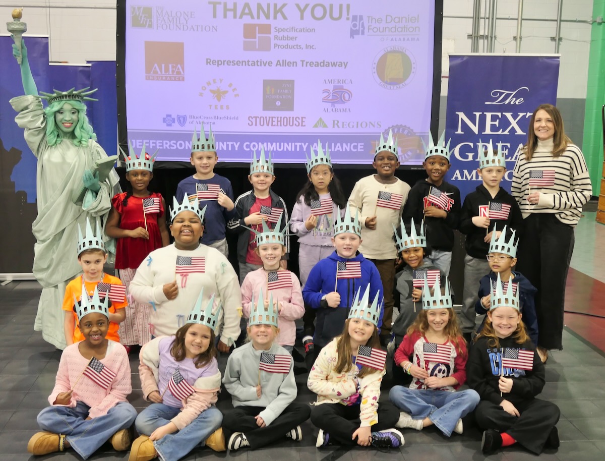- 2nd graders of Gardendale Elementary gathered today to meet Libby Liberty™