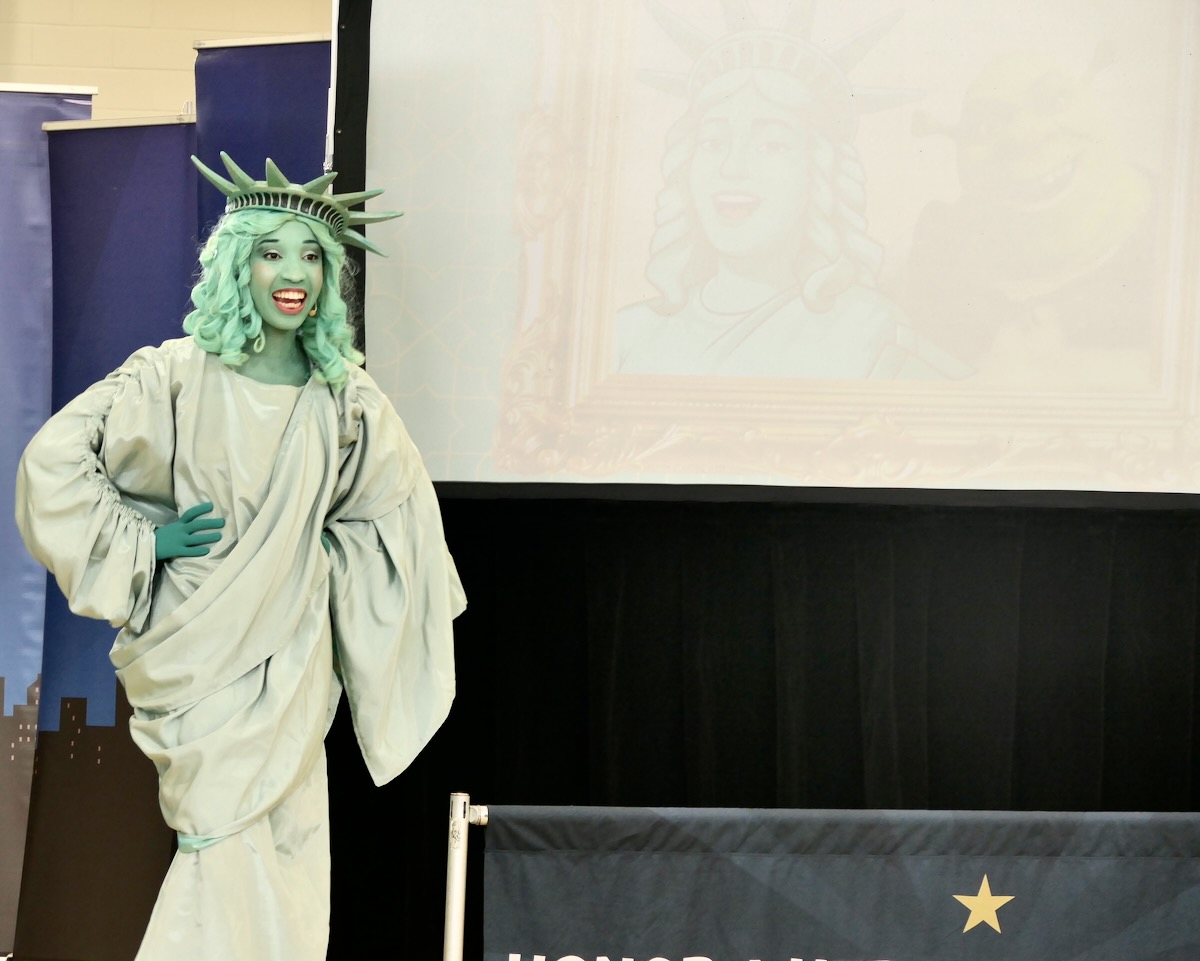 - Libby Liberty™ makes her entrance to reveal her true name: “Liberty Enlightening the World.”