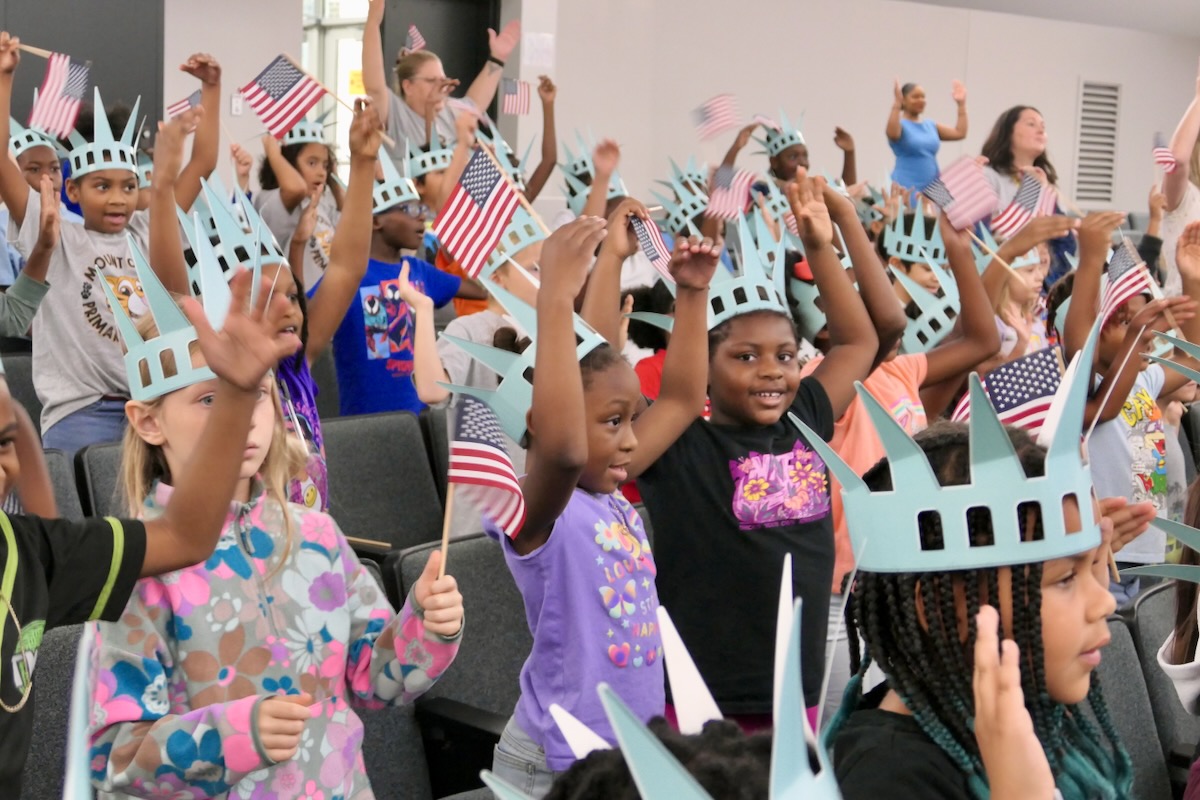 After class photos with Libby, students and teachers return to classrooms energized to learn crucial, all-American lessons. They’ll also begin the process of nominating and honoring “Helping Hands Heroes” who they will honor at their graduation celebration when the program is complete for this year.