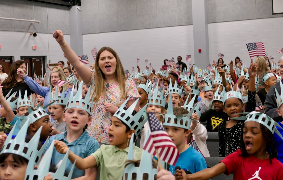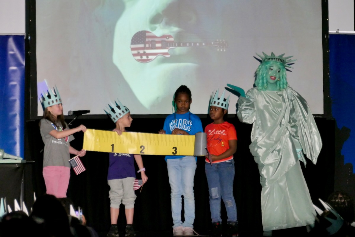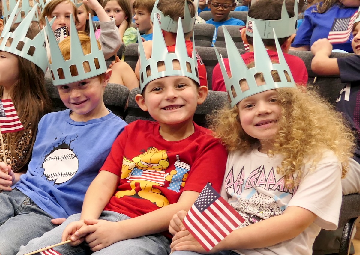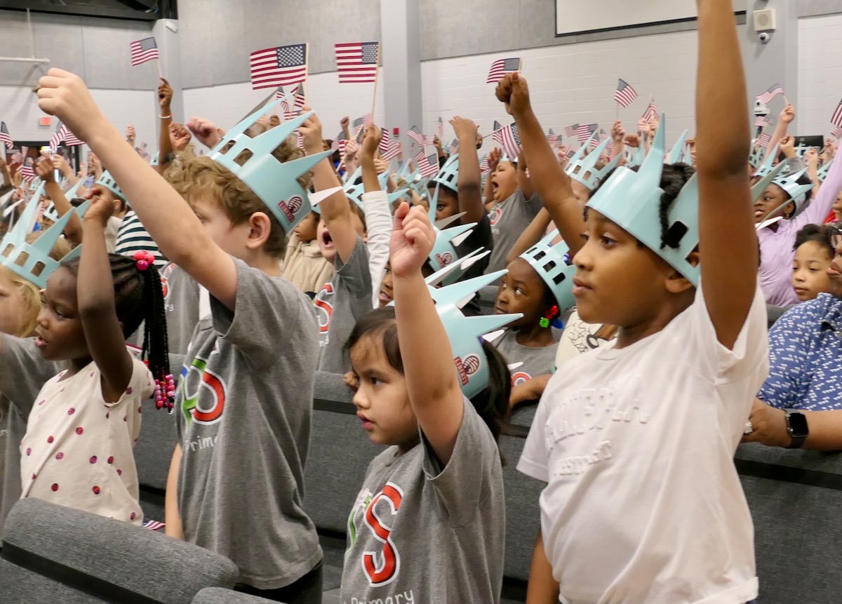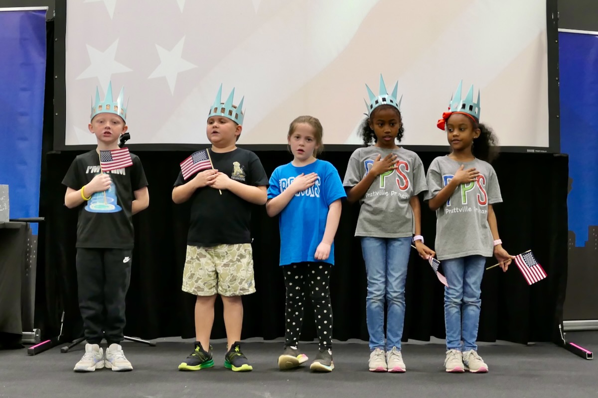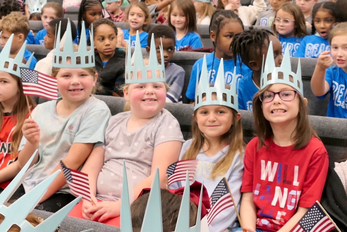 Today first graders from Billingsley High School, Daniel Pratt Elementary School, Pine Level Elementary School, &Prattville Primary School cheered and counted down to the grand entrance of Libby Liberty™. Wearing green paper crowns and waving tiny American flags, they showed their enthusiasm for the Super Citizen Program they’ll begin after today’s theatrical performance.
