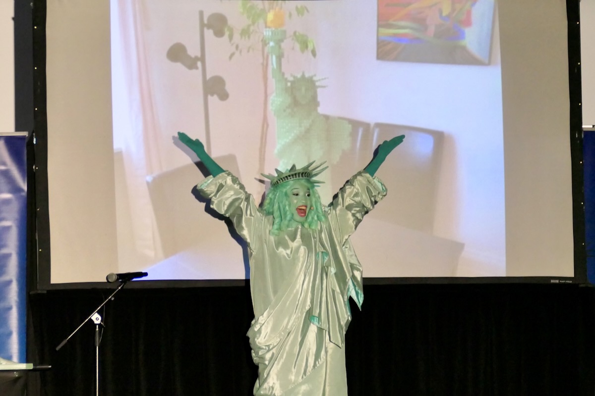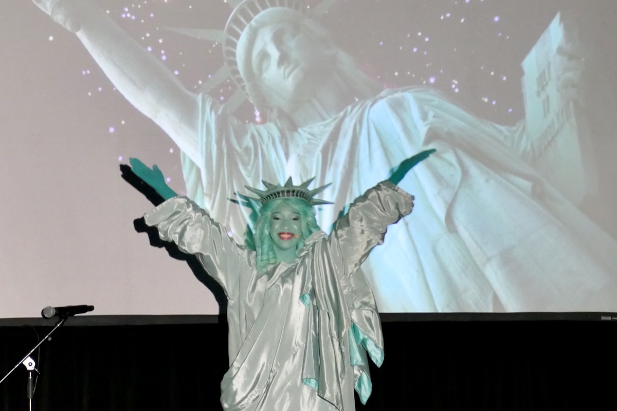 - Libby Liberty™ makes her entrance to reveal her true name: “Liberty Enlightening the World.”