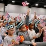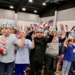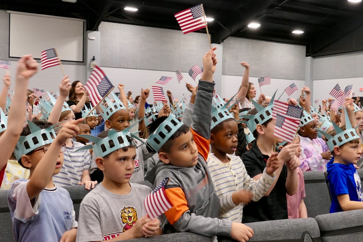 - Waving their flags with excitement as they arrive at their Hands on Liberty Kickoff!