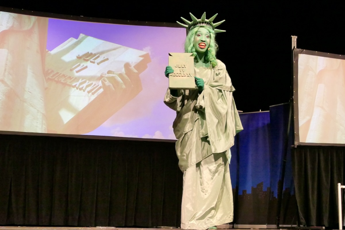- Libby Liberty™ makes her entrance to reveal her true name: “Liberty Enlightening the World.”