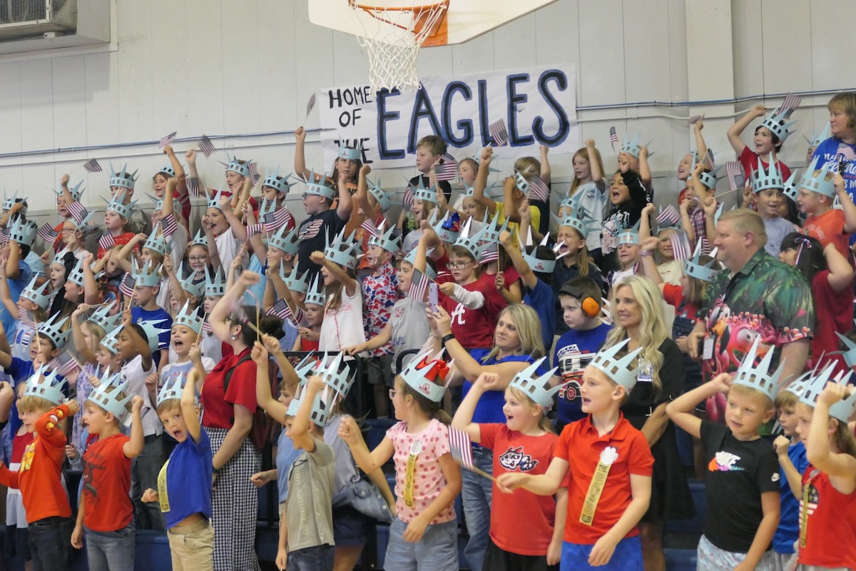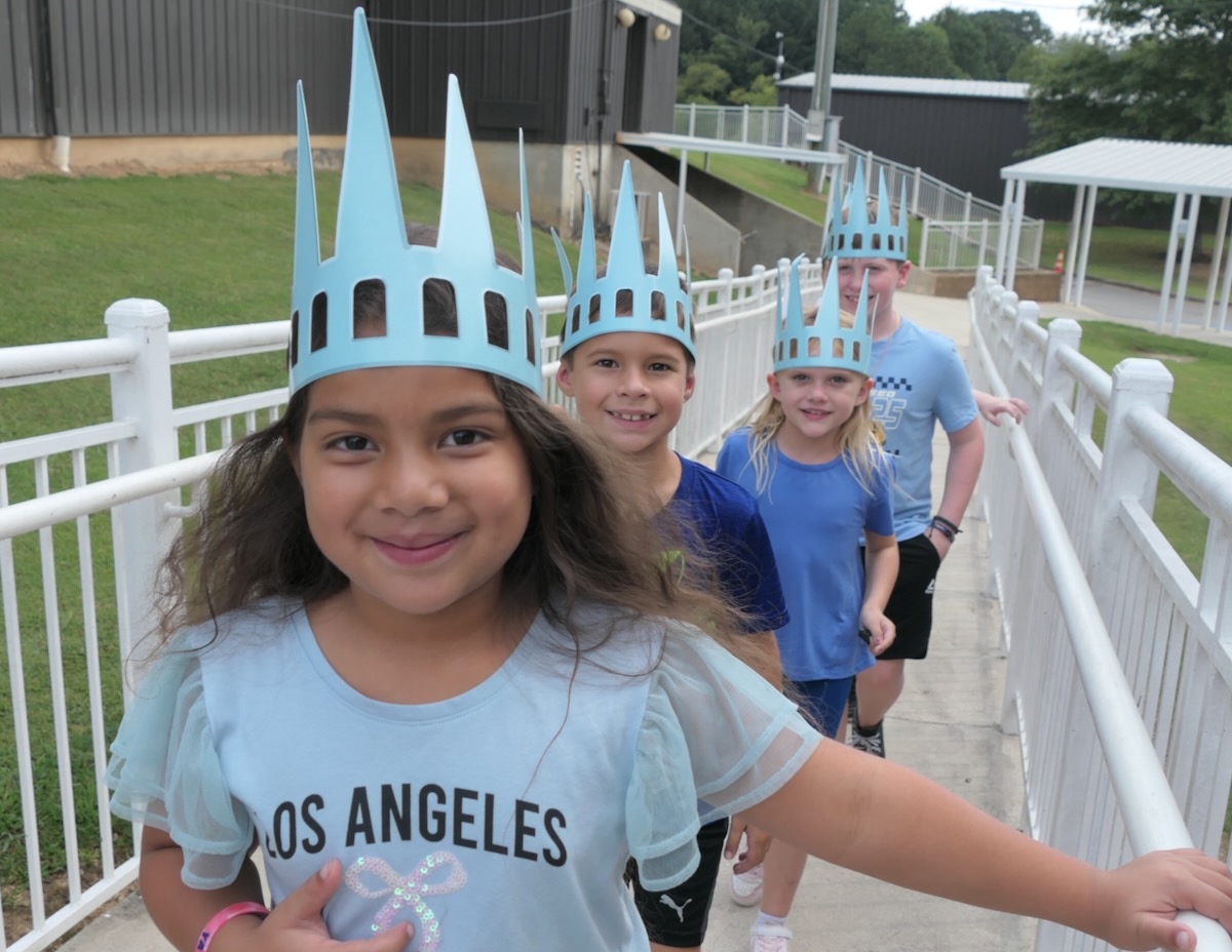 Today second graders from Priceville, Danville-Neel, Eva, Falkville, Union Hill, Cotaco, & Lacey’s Spring Elementary Schools cheered and counted down to the grand entrance of Libby Liberty™. Wearing green paper crowns and waving tiny American flags, they showed their enthusiasm for the Super Citizen Program they’ll begin after today’s theatrical performance.