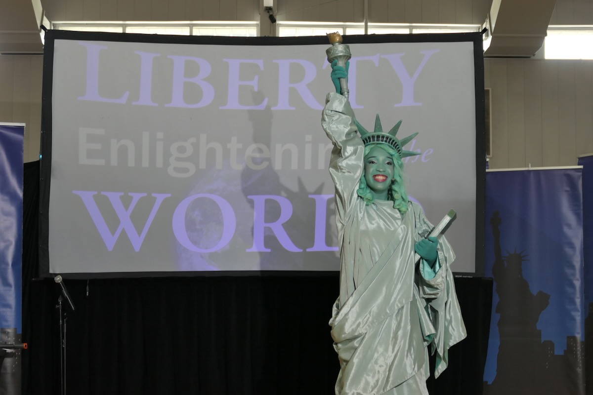 - Libby Liberty™ makes her entrance to reveal her true name: “Liberty Enlightening the World.”