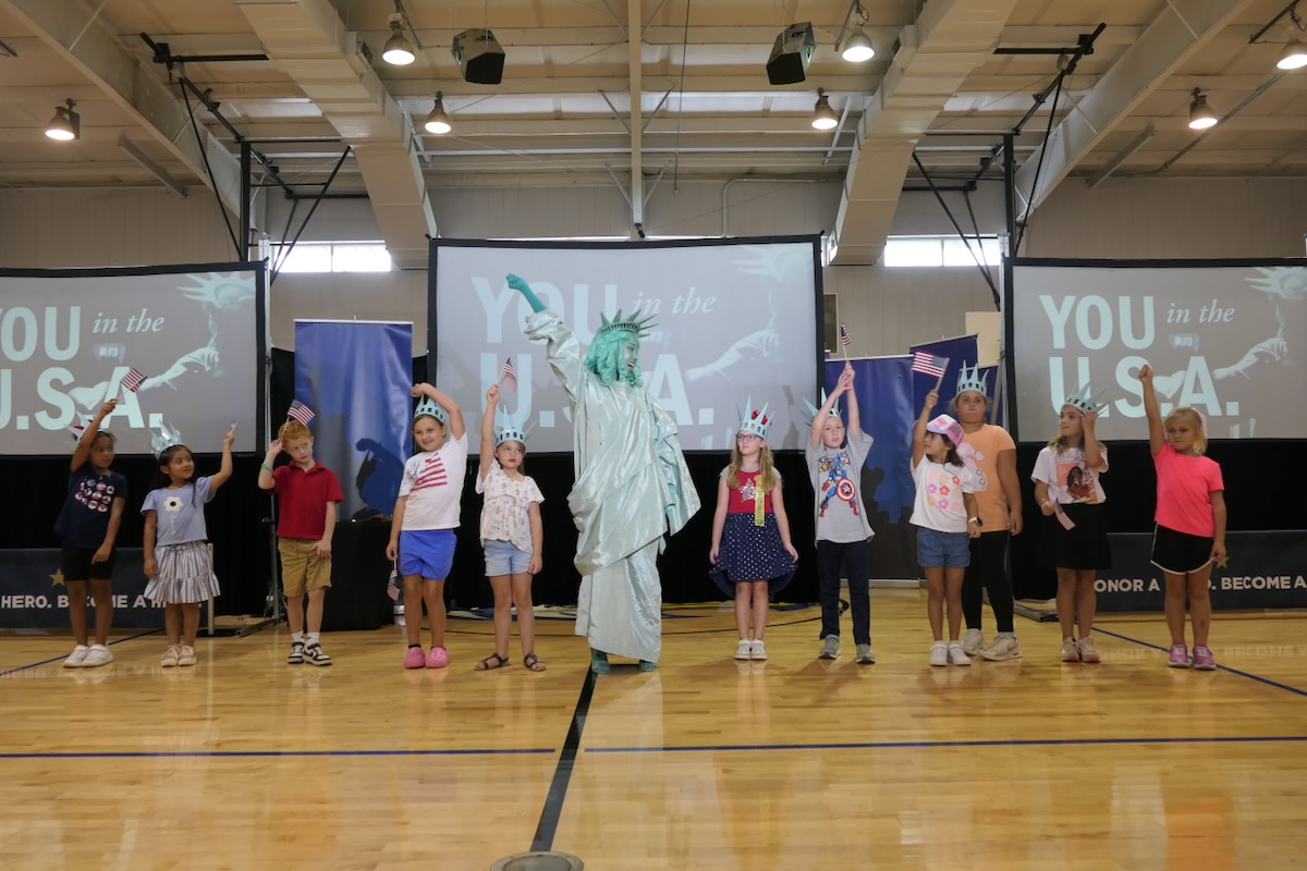 After class photos with Libby, students and teachers return to classrooms energized to learn crucial, all-American lessons. They’ll also begin the process of nominating and honoring “Helping Hands Heroes” who they will honor at their graduation celebration when the program is complete for this year.