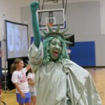 Liberty Learning Foundation (with generous sponsorship by the Morgan County Community Alliance) is kicking off the program in a big way. Not only are students watching as the vivacious Statue of Liberty character brings history to life, they are also being introduced to the man who will give them a “hand” with lessons back in their classrooms. As Libby winds down, she hands the screen over to Mr. Palmer, a brash and brilliant hand-character who leads students in lessons in civics, character, financial literacy and our Great American Story.