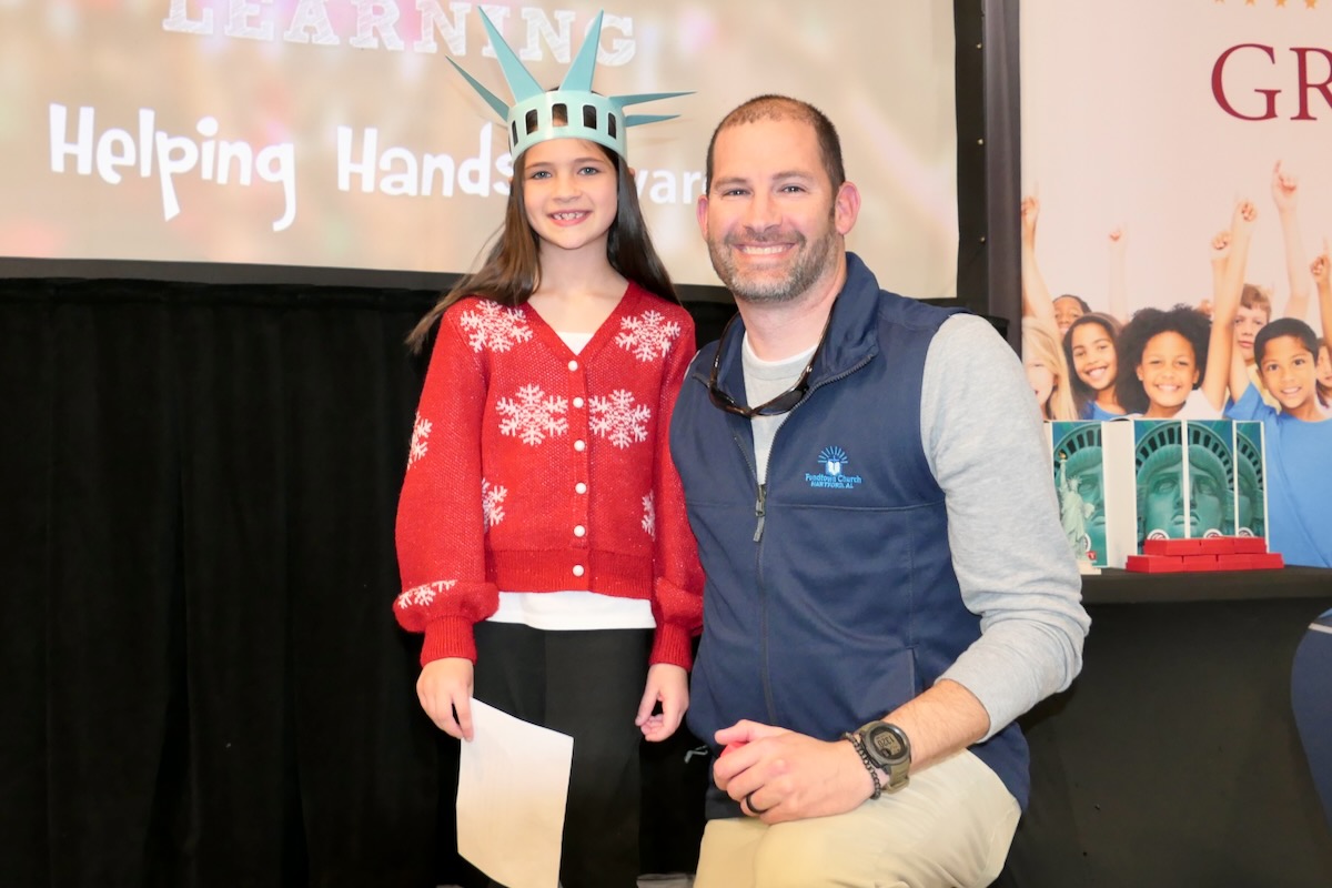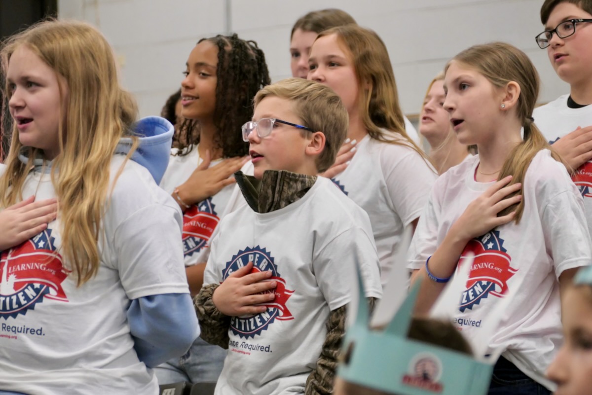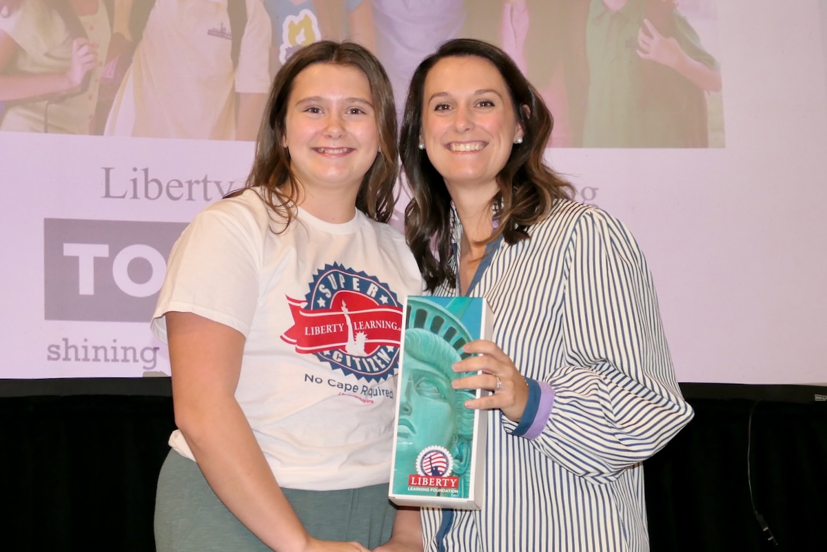 These students have learned their important roles in America’s future thanks to an immersive experience in civics, character, financial literacy and social studies. And in the closing piece of the program, Torch Teams (or “Helping Hands” for the younger students), students are applying those crucial lessons in the real world. They chose heroes who embodied the traits of amazing citizens and read essays from stage before presenting them with an Authentic Liberty Replicas & Liberty Pins. They learned that “when you honor a hero, you become a hero!”