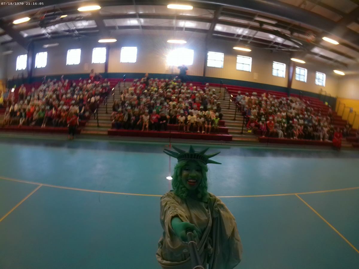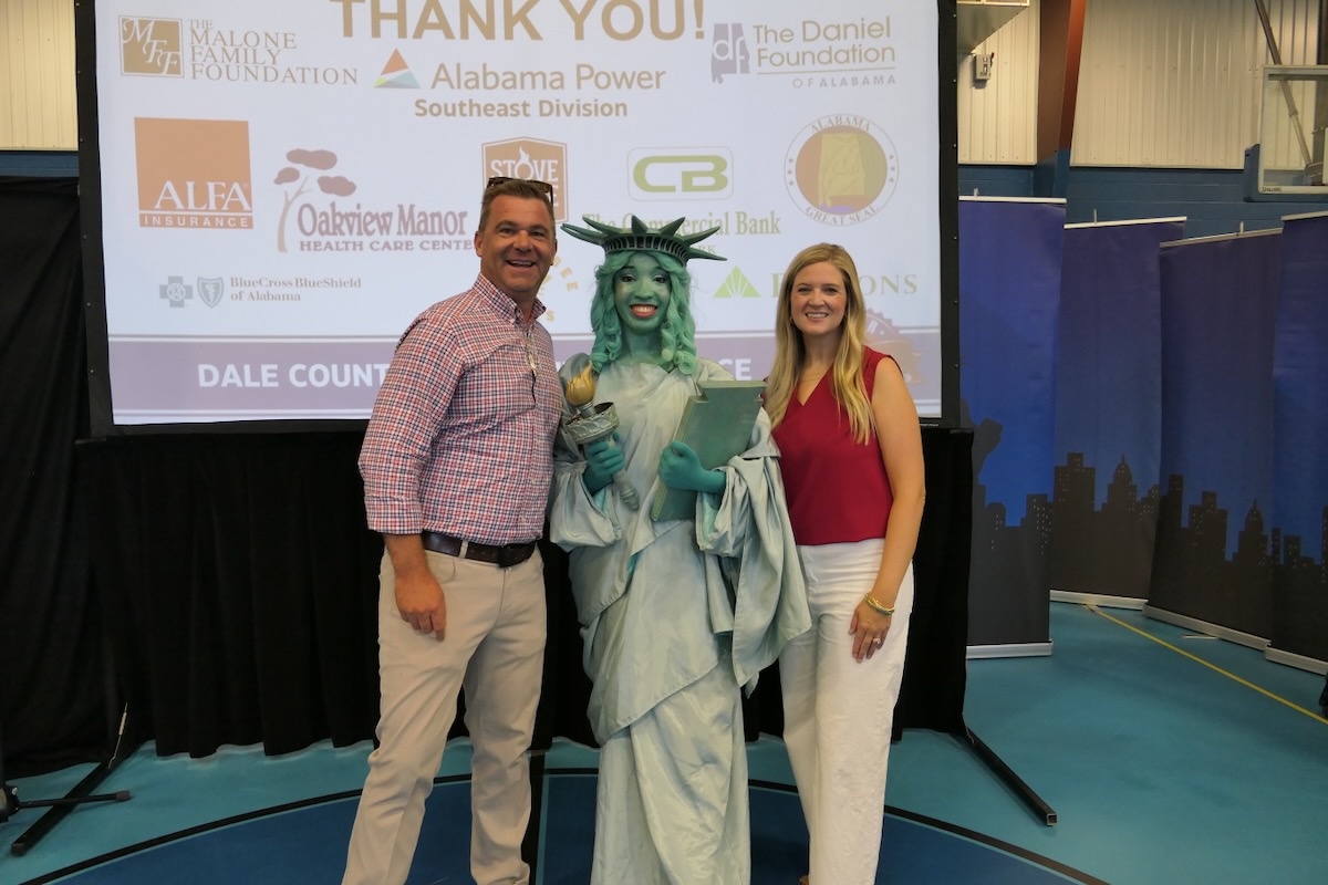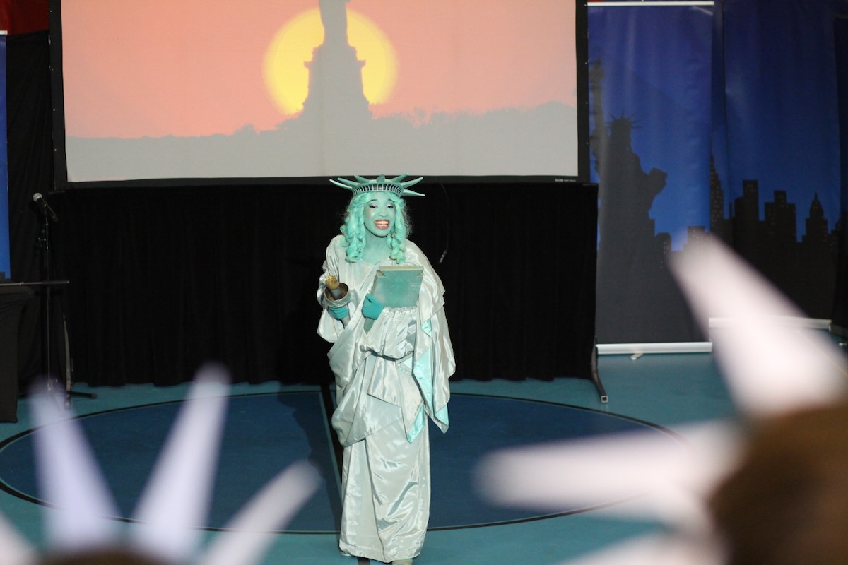 - Libby Liberty™ makes her entrance to greet the students of Ozark City Schools.