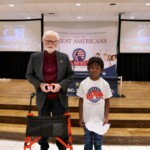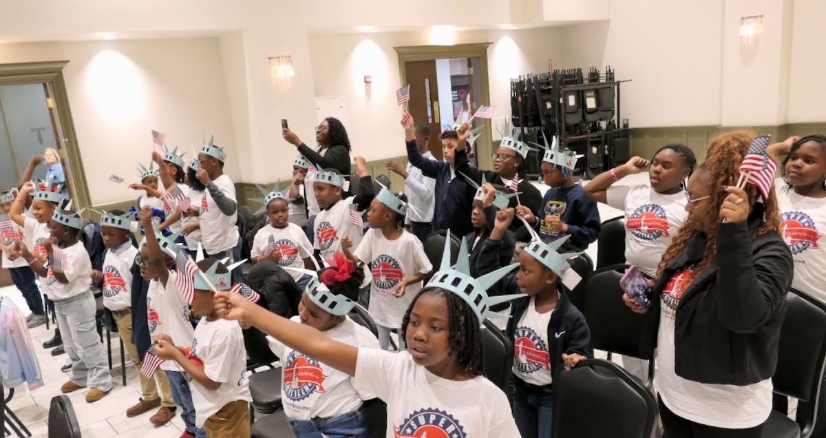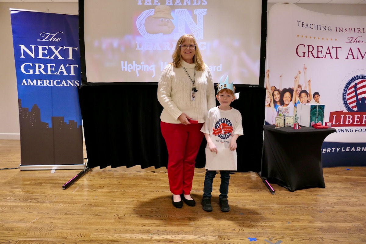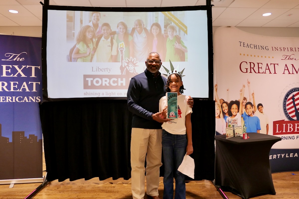 These students have learned their important roles in America’s future thanks to an immersive experience in civics, character, financial literacy and social studies. And in the closing piece of the program, Torch Teams (or “Helping Hands” for the younger students), students are applying those crucial lessons in the real world. They chose heroes who embodied the traits of amazing citizens and read essays from stage before presenting them with an Authentic Liberty Replicas & Liberty Pins. They learned that “when you honor a hero, you become a hero!”