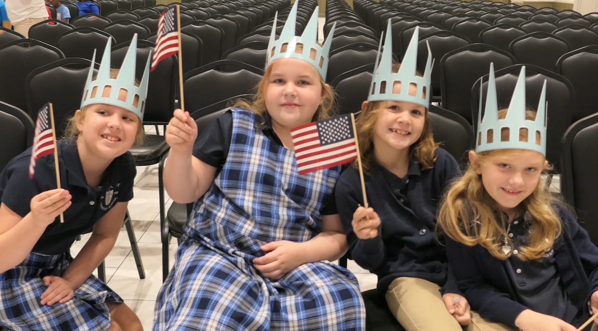 Students in multiple grades are participating in the Super Citizen Program. The younger grades are taught by an innovative civic education program starring Mr. Palmer (the hand-puppet host of the “Hands on Liberty” series).