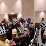 The lady in green brought history to life and introduced students to the 10-week civic, character, financial literacy and social studies program they will begin when her tour rolls away. She told them that they already have the most important title in the world: “CITIZEN.”