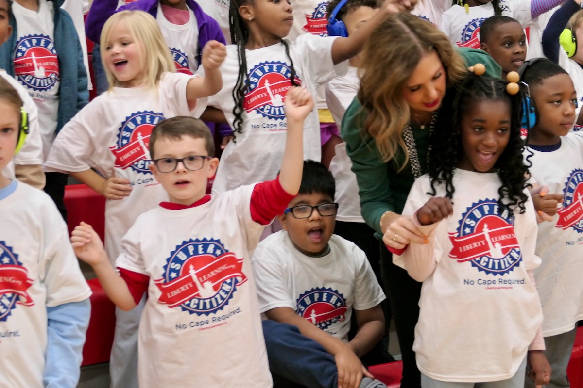 Today, 2nd graders from Pike Road Elementary School filled their gymnasium. After finishing 10 weeks in the Hands on Liberty Program, they are gathered to celebrate their accomplishments and honor local heroes from the stage.