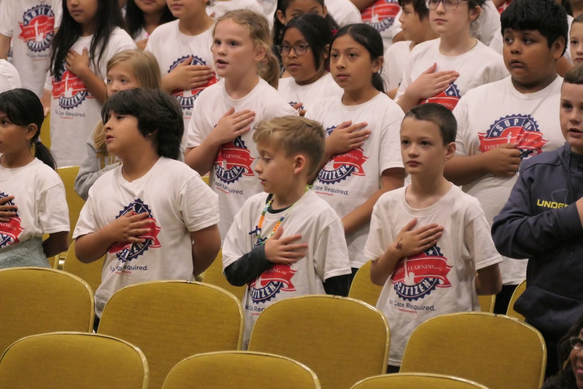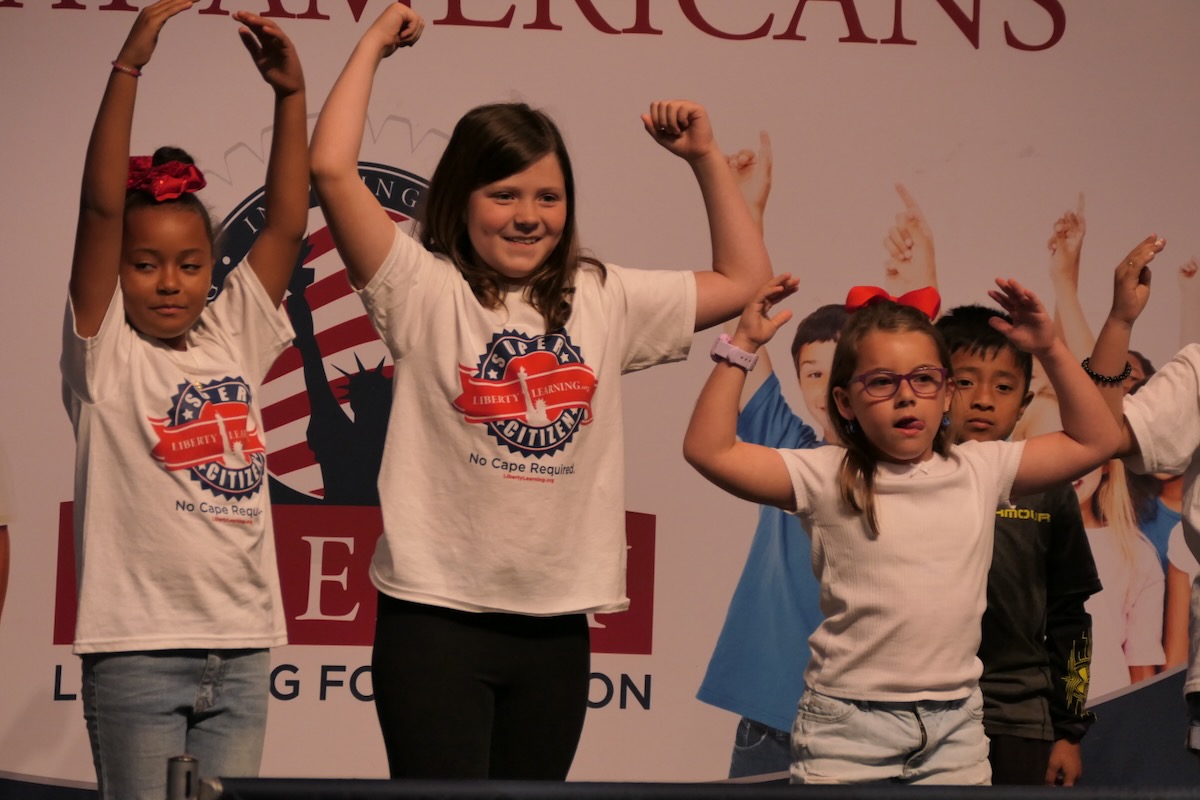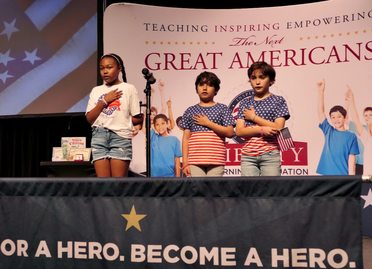 These students have learned their important roles in America’s future thanks to an immersive experience in civics, character, financial literacy and social studies. And in the closing piece of the program, Torch Teams (or “Helping Hands” for the younger students), students are applying those crucial lessons in the real world. They chose heroes who embodied the traits of amazing citizens and read essays from stage before presenting them with an Authentic Liberty Replicas & Liberty Pins. They learned that “when you honor a hero, you become a hero!”