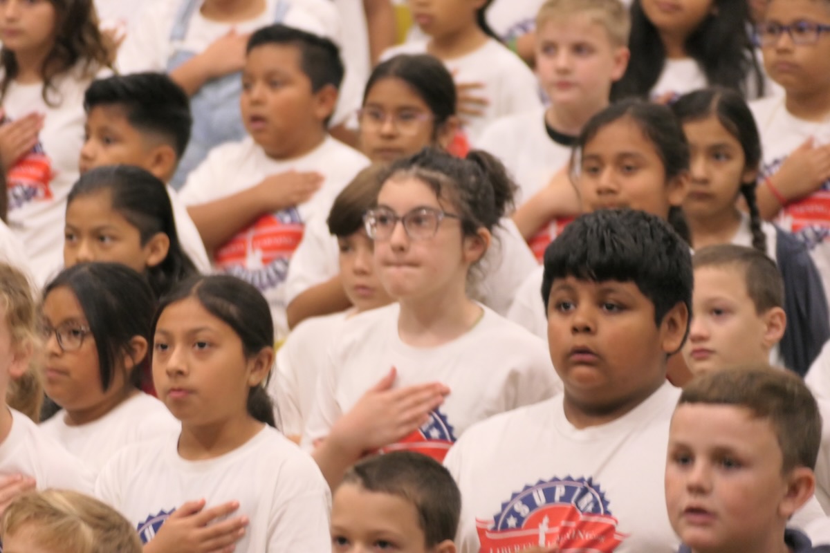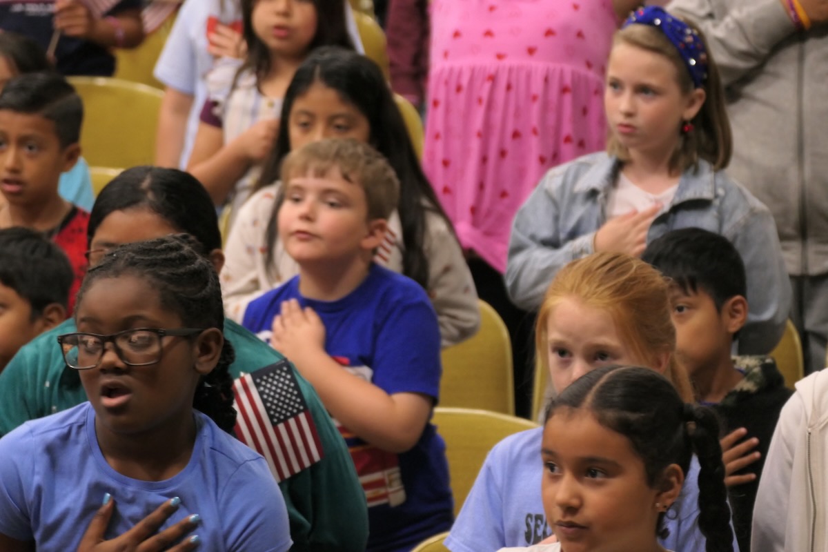 - Jaylen, Jayden, and Natalia lead students, heroes, and guests in the Pledge of Allegiance!