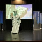 The lady in green brought history to life and introduced students to the 10-week civic, character, financial literacy and social studies program they will begin when her tour rolls away. She told them that they already have the most important title in the world: “CITIZEN.”